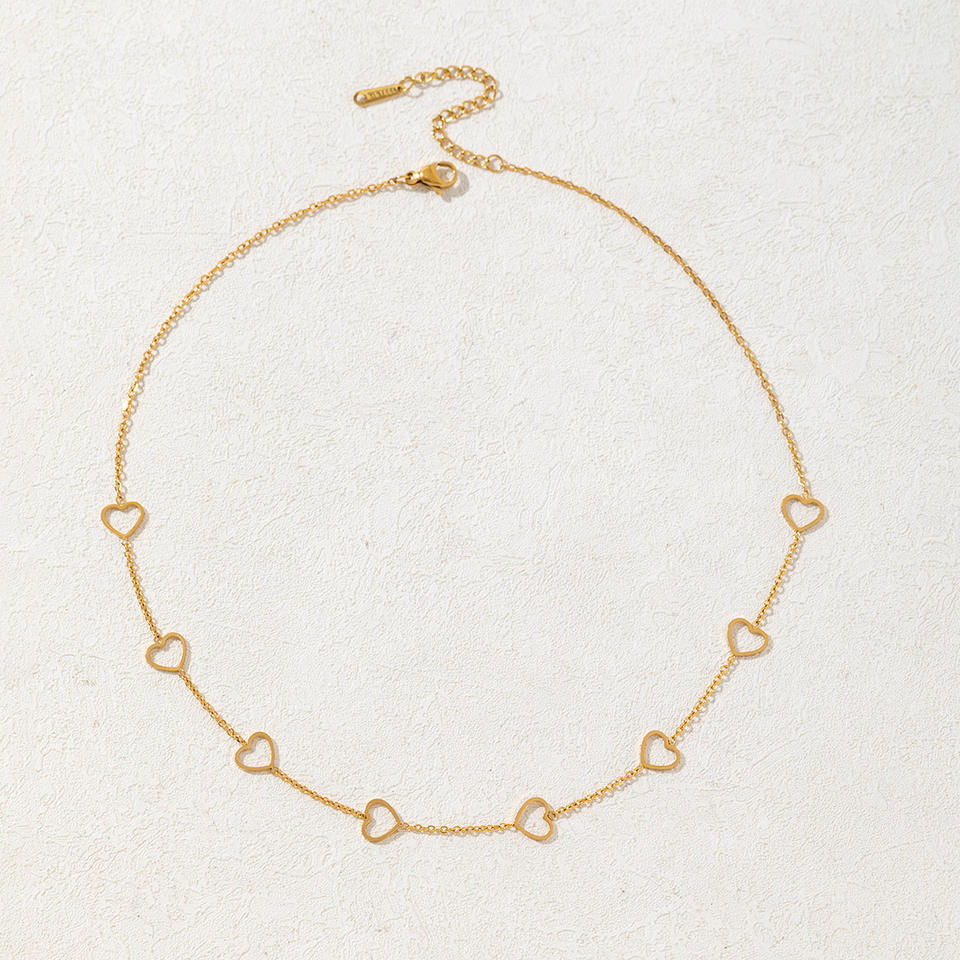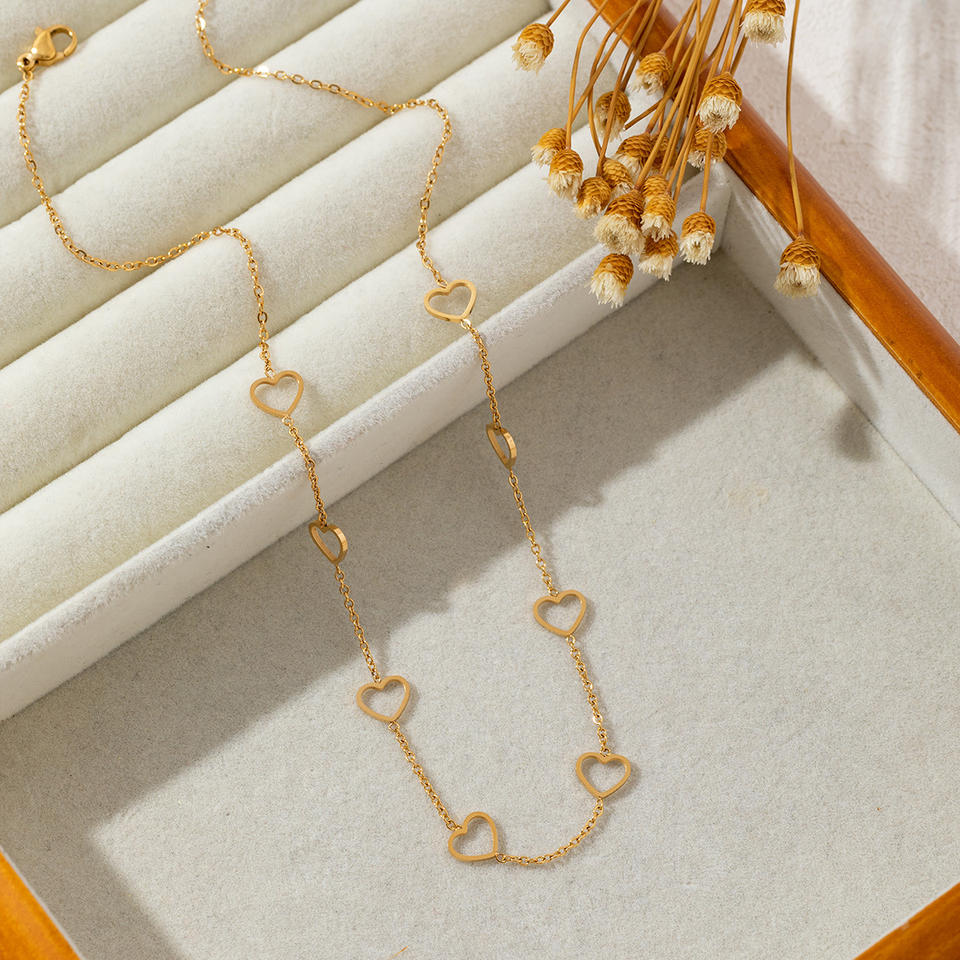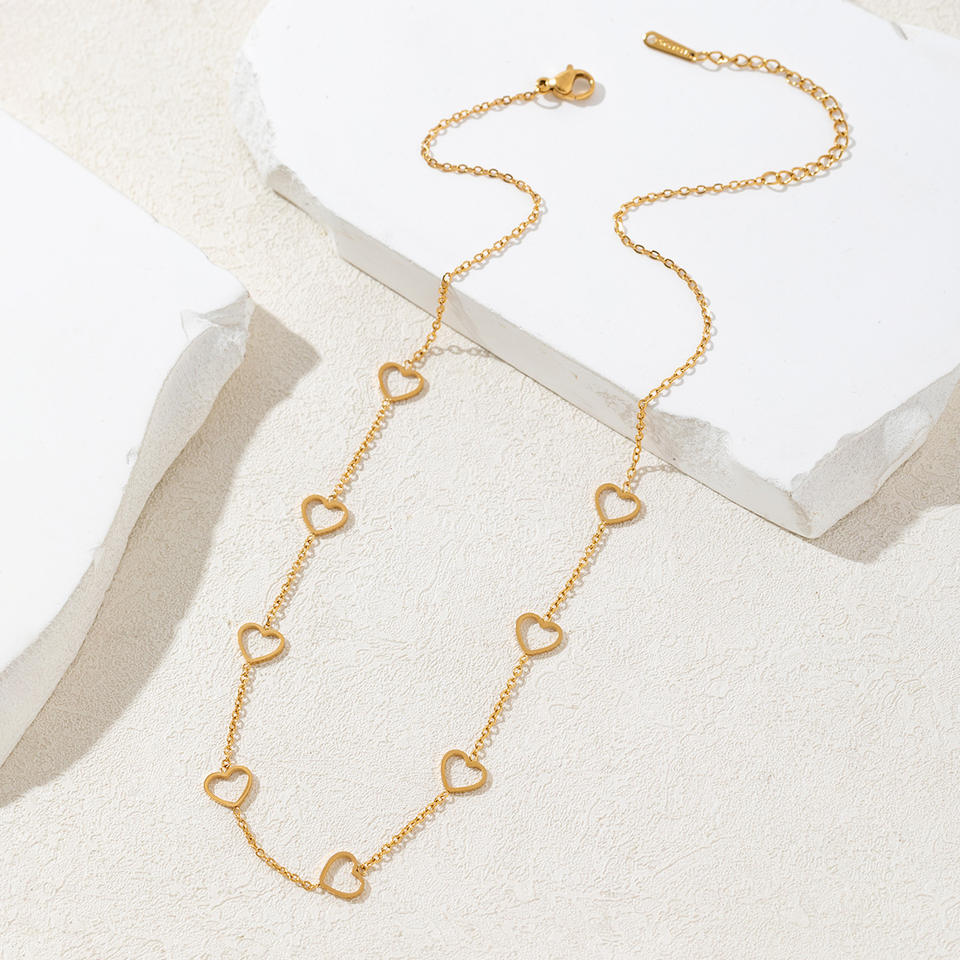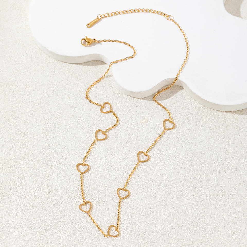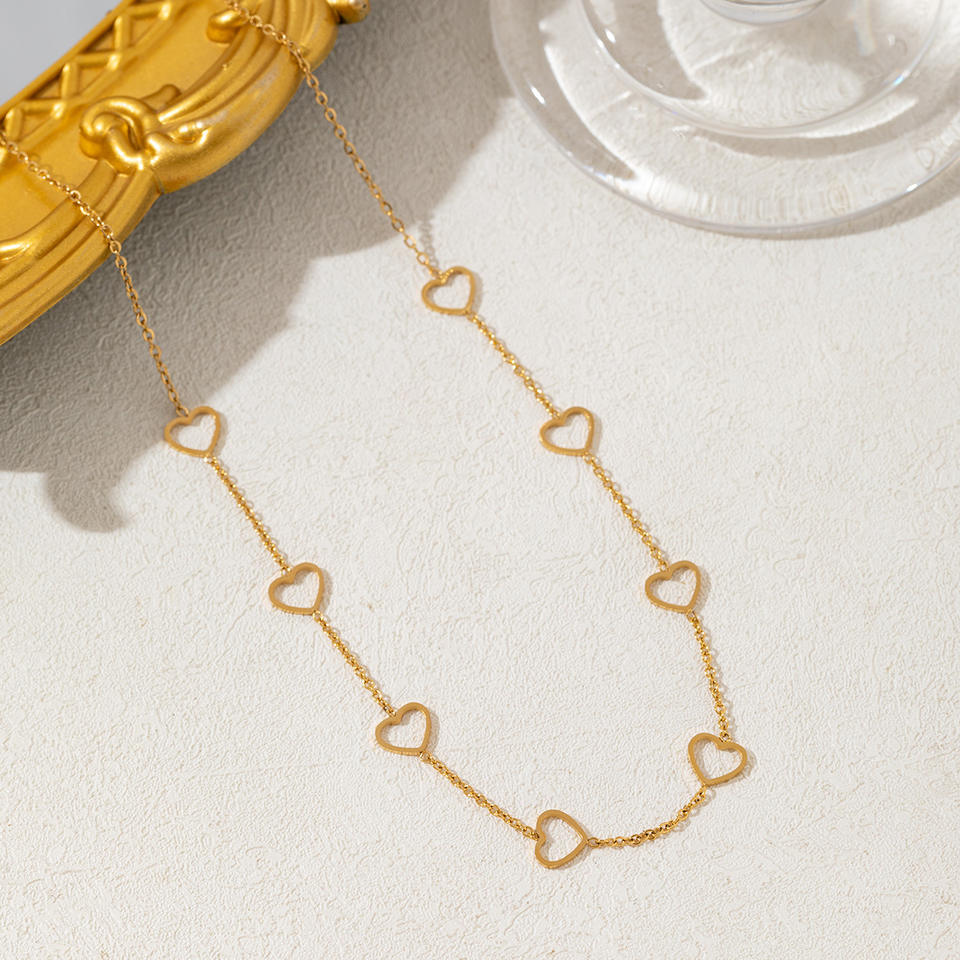 Women's Adjustable Hollow Heart Pendant Gold Necklace, 18k Gold Plated Necklace, Stainless Steel Jewelry