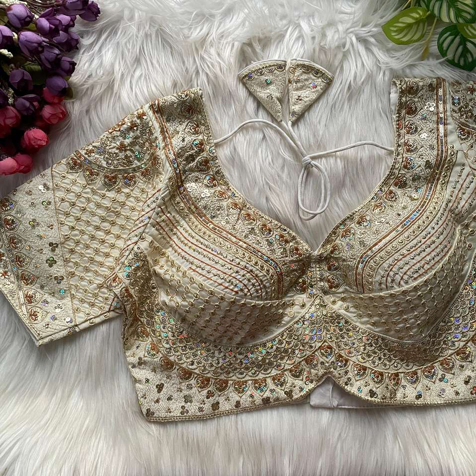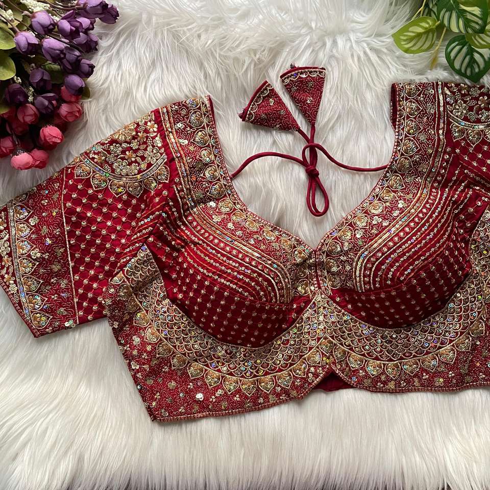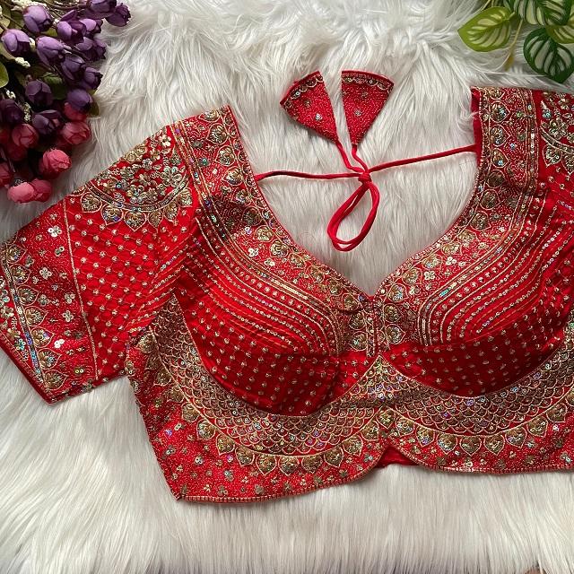 เสื้อชอลีผ้าไหมโรมันแท้เนื้อนุ่มสำหรับผู้หญิง งานปักสวยงาม เหมาะสำหรับงานปาร์ตี้ ผลิตในอินเดีย