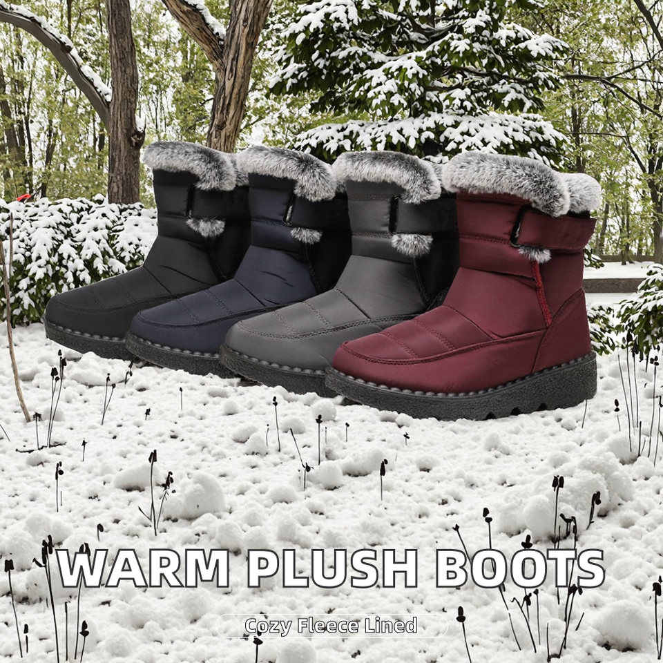 รองเท้าบูทกันน้ำสำหรับผู้หญิง ใส่ได้ทุกฤดู แบบสั้น หุ้มข้อสูง บุขนหนานุ่ม อุ่นสบาย เหมาะสำหรับใส่ในหิมะ พื้นรองเท้าทำจากผ้า PVC