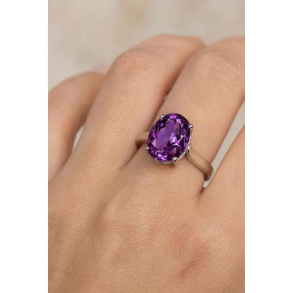 แหวนพลอยอเมทิสของผู้หญิง925เครื่องประดับหรูหราเงินสเตอร์ลิงสำหรับงานเลี้ยงวันเกิดการหมั้นของคริสเตียนขายส่งจำนวนมาก