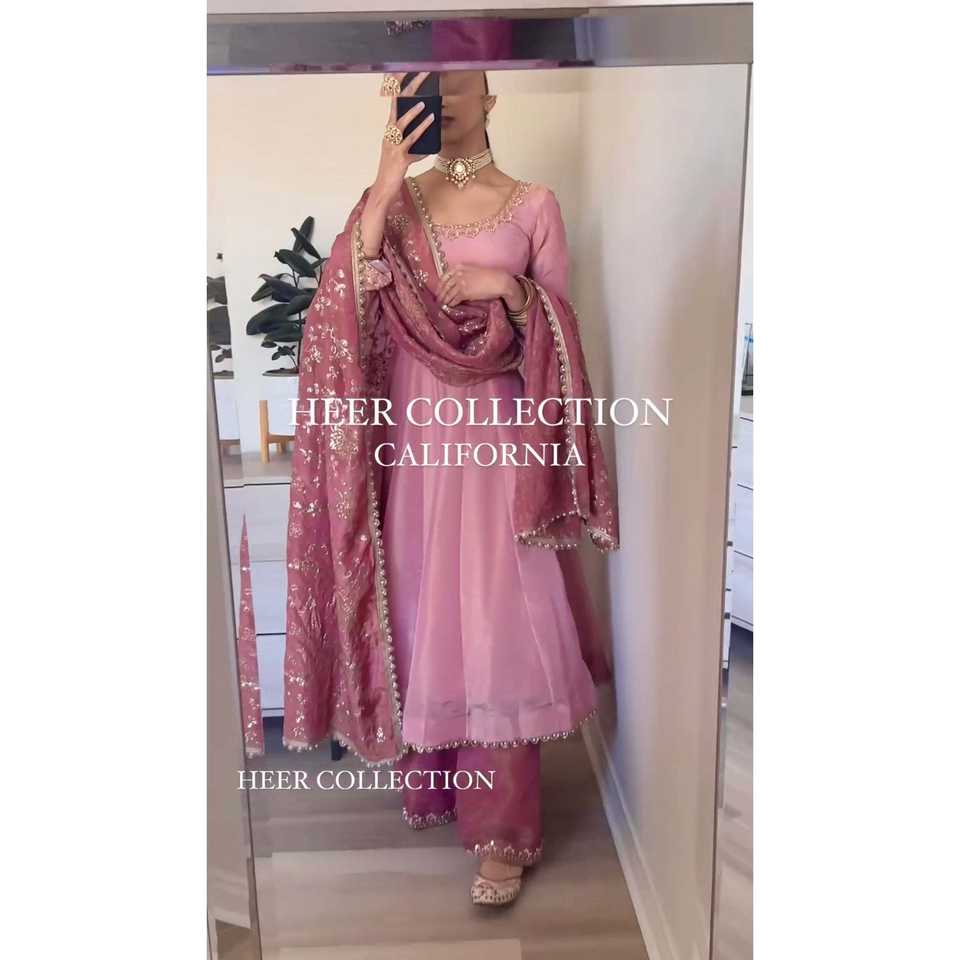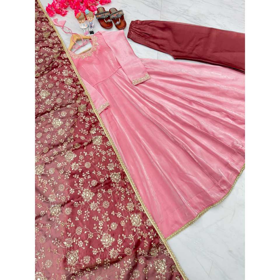 Women's Anarkali Gown Dupatta Plazzo Set for Parties-for Festive Wear