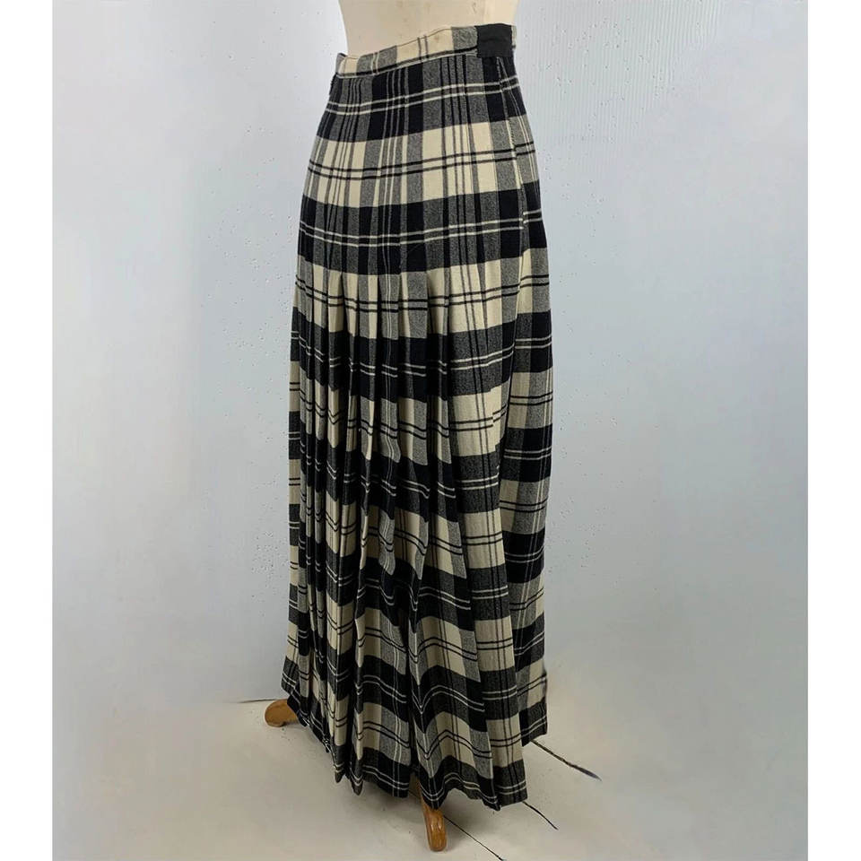 กระโปรงแม็กซี่ลายสก็อตแคนทรานแคลนแอนเดอร์สันสำหรับผู้หญิง สีดำและสีขาว ทำจากขนสัตว์ 100% รับสั่งทำขายส่ง