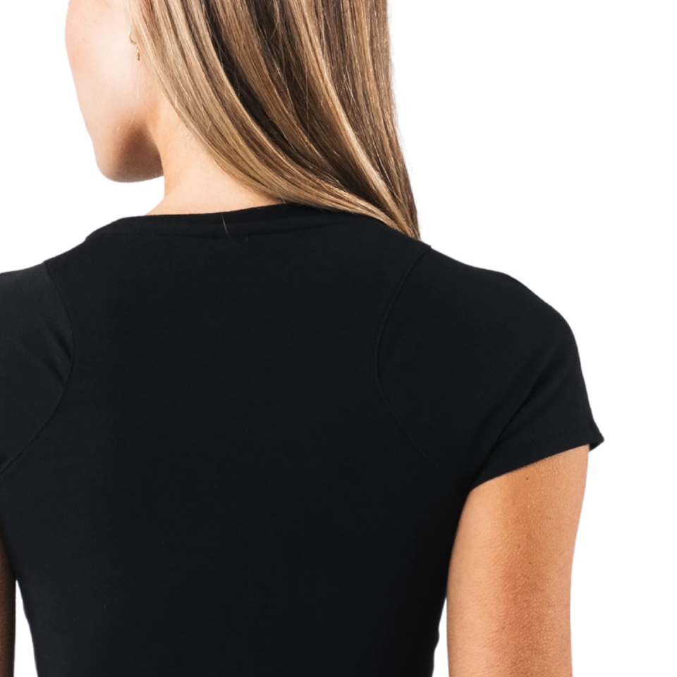เสื้อยืดครอปทรงเอียงสำหรับผู้หญิง แขนสั้น ผ้าเนื้อนุ่ม ยืดหยุ่นได้ น้ำหนักเบา เหมาะสำหรับออกกำลังกาย ใส่ลำลอง หรือเล่นกีฬา
