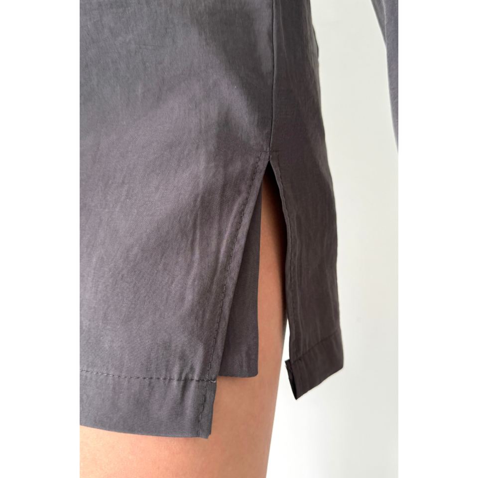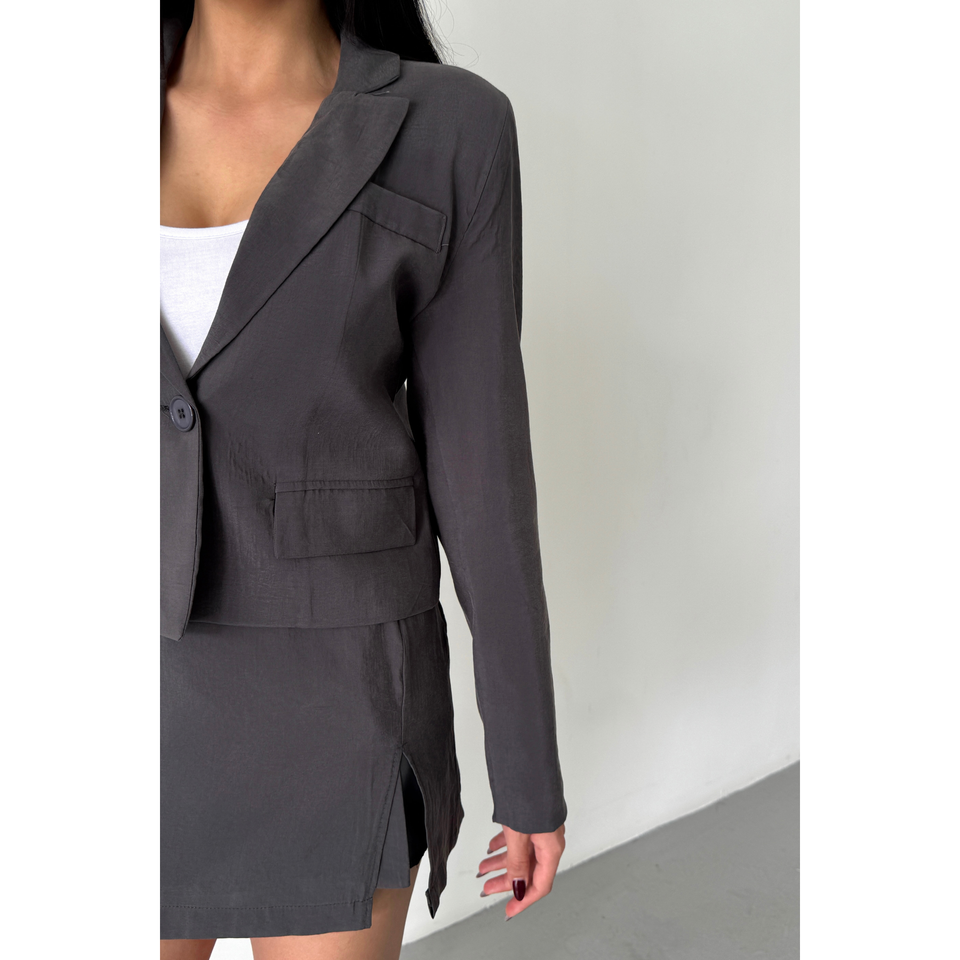 ชุดเสื้อแจ็คเก็ตครอปสีแอนทราไซต์และกระโปรงสั้นสำหรับผู้หญิง