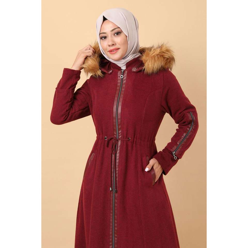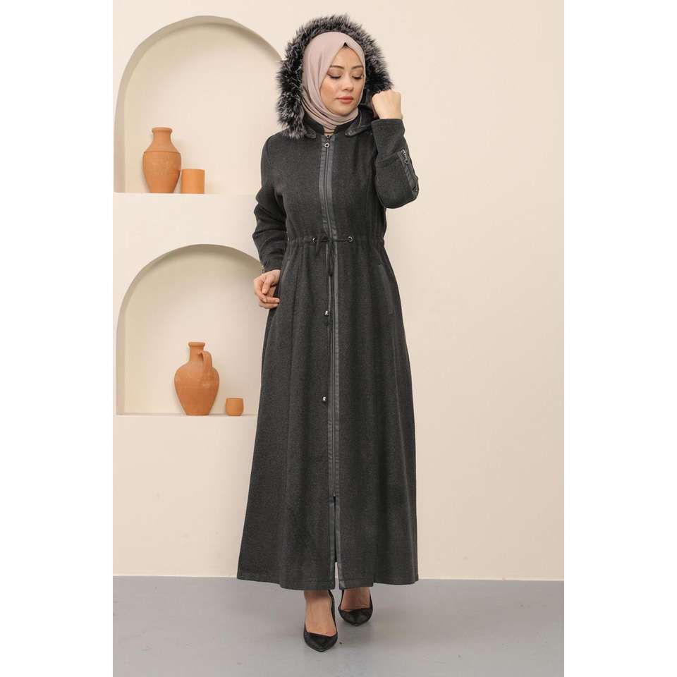 เสื้อโค้ทขนสัตว์สีแอนทราไซต์สำหรับผู้หญิง รุ่น Mega Merchant พร้อมรายละเอียดหนังแบบมีซิป น้ำหนักใยขนสัตว์ 150-200 กรัม รุ่น 34334