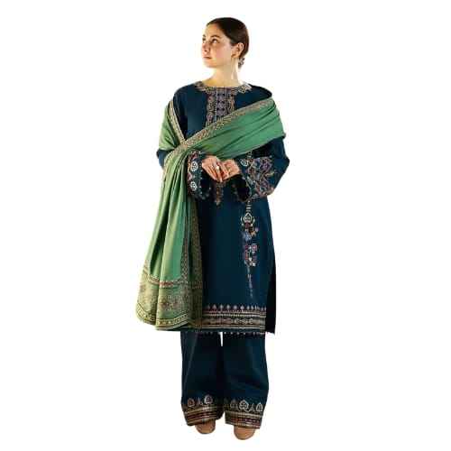 ชุดสตรีสไตล์เอเชีย 3 ชิ้น ผ้าลูกไม้ปักเลื่อมแบบเรียบ ชุดชาลวาร์ คามีซ พร้อมผ้าคลุมไหล่ งานปักหนัก ทรงเอไลน์ ความยาวระดับเข่า