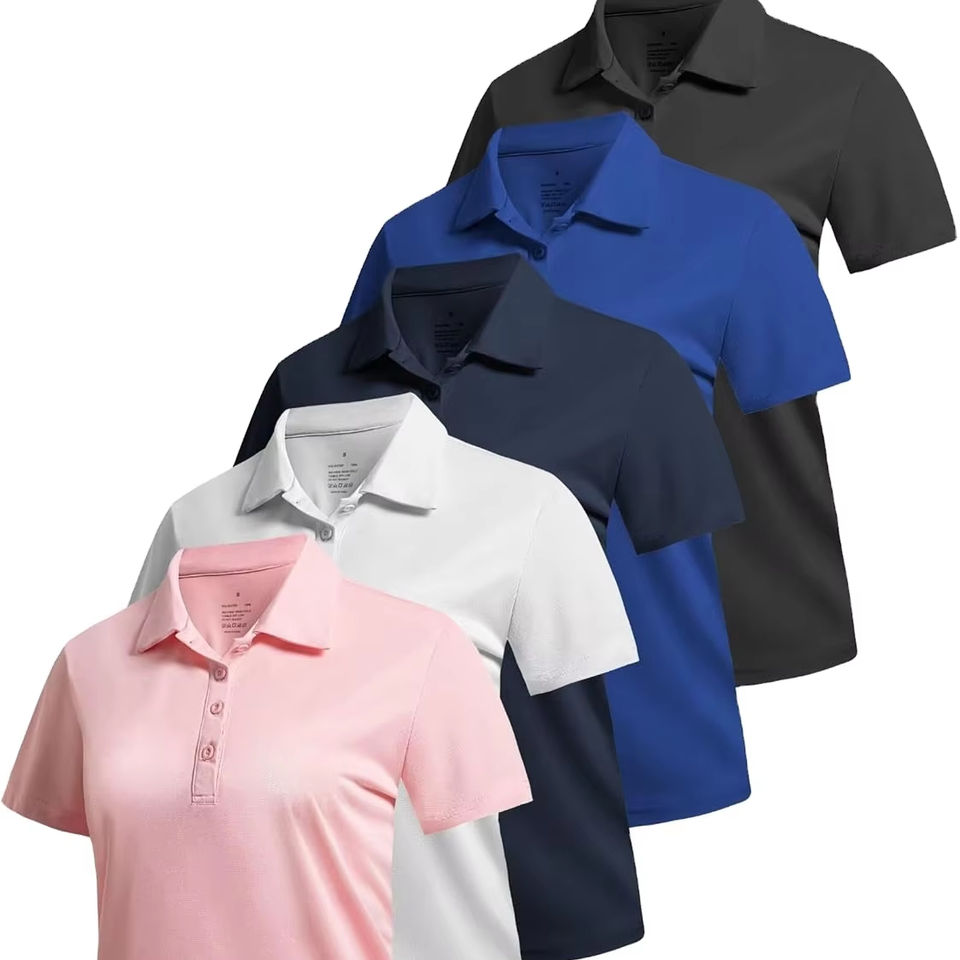 เสื้อกีฬาสำหรับผู้หญิง4ปุ่มสำหรับทำงานโปโลเทนนิสเสื้อระบายอากาศแขนสั้นกางเกงขาสั้นแบบถักแบบลำลอง