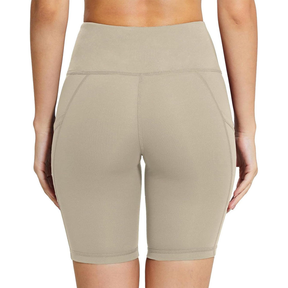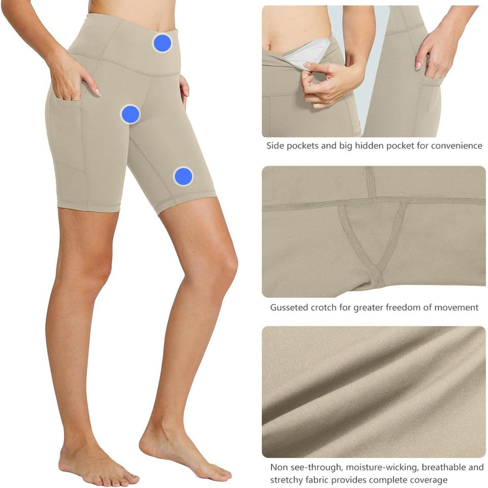 กางเกงขาสั้นโยคะสไตล์สปอร์ตสำหรับผู้หญิง ยืดหยุ่นสูง กระชับสัดส่วน เก็บหน้าท้อง กระเป๋าลึก เป็นมิตรกับสิ่งแวดล้อม เอวยางยืด