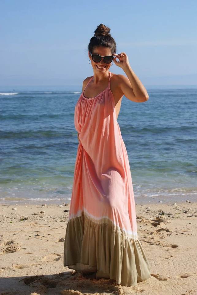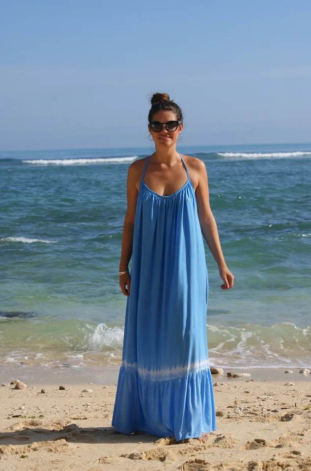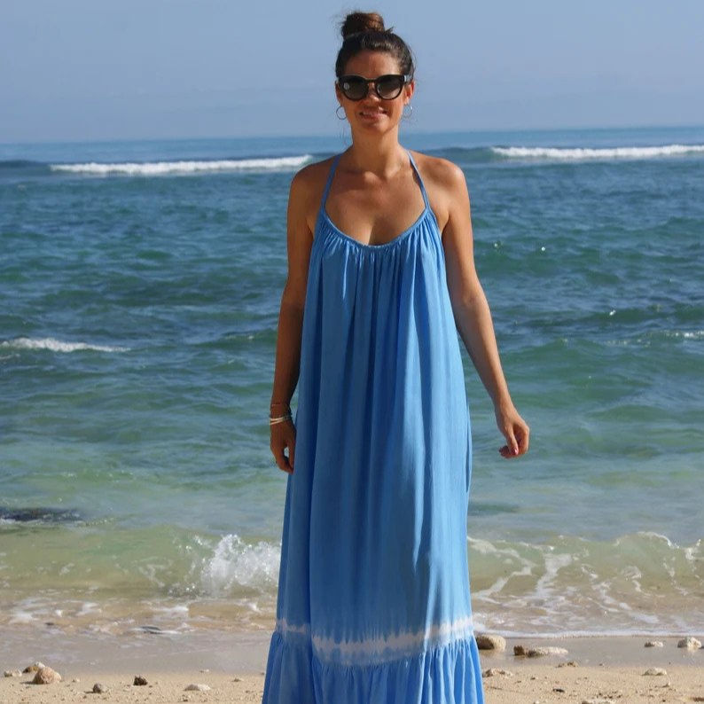 เดรสแม็กซี่ดึงดูดใจสำหรับผู้หญิงชุดเดรสลำลองแขนกุดยาวถึงพื้นสไตล์หวานๆและรอบเอวธรรมชาติ