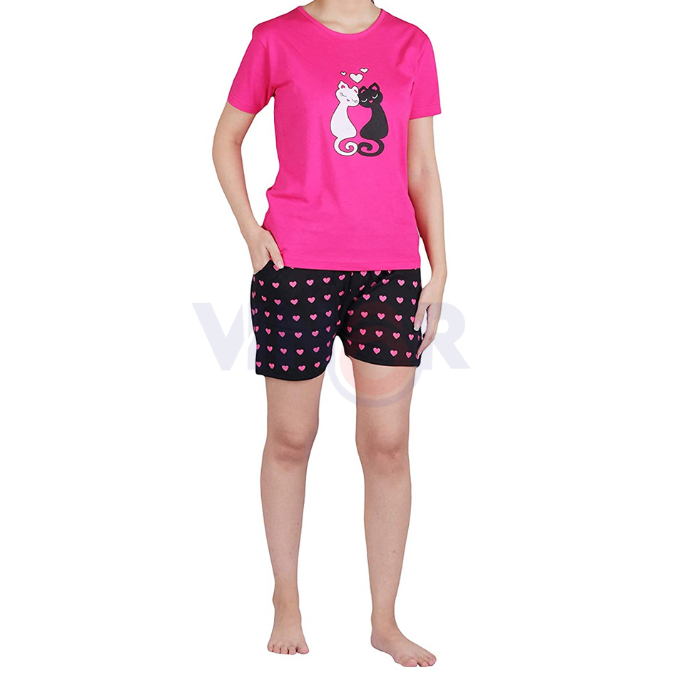 Women's Autumn Plus Size Printed Twin Set OEM Custom Logo Soft Cotton Breathable Fabric Wholesale Price Short Set