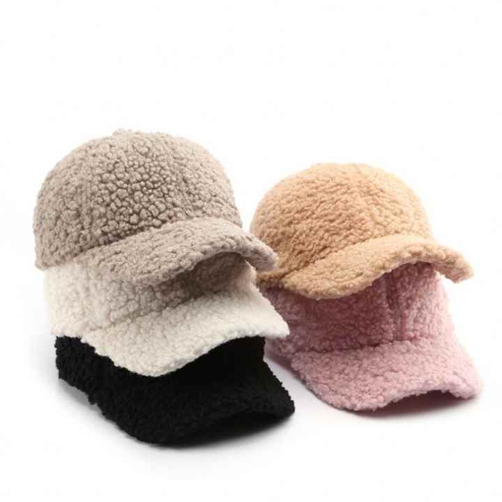 หมวกเบสบอลขนแกะผู้หญิงฤดูใบไม้ร่วงฤดูหนาวหมวกท่องเที่ยวกลางแจ้งสีทึบ