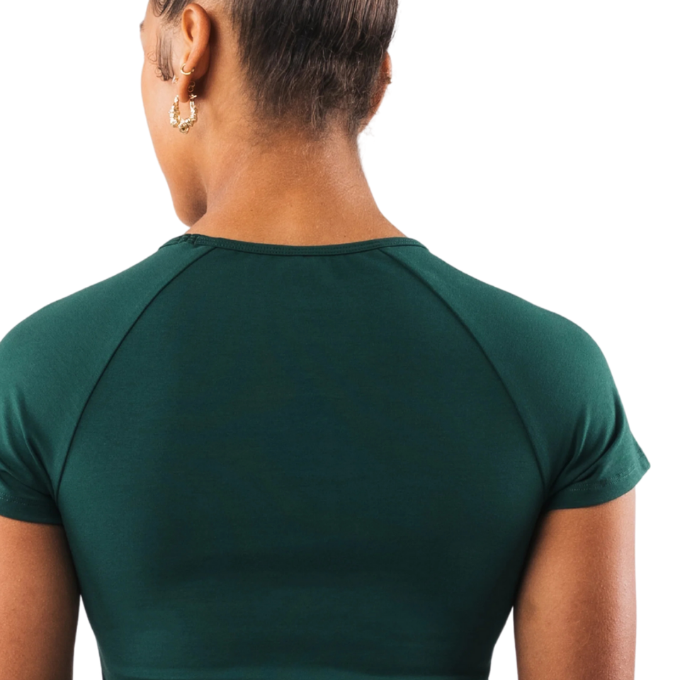 เสื้อยืดแขนสั้นผู้หญิง ทรงบอดี้คอน ผ้าเนื้อนุ่ม ยืดหยุ่น น้ำหนักเบา เหมาะสำหรับออกกำลังกาย ใส่ลำลอง หรือใส่ในชีวิตประจำวัน
