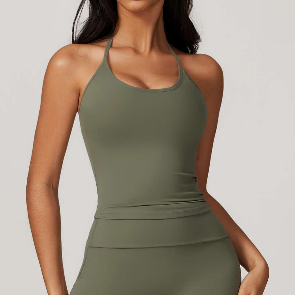 เสื้อกล้ามกีฬาโชว์หลังของผู้หญิงและเสื้อโยคะสนับสนุนเซ็กซี่สำหรับยิมพิลาทีสฟิตเนสออกกำลังกายแขนกุดระบายอากาศได้ดี