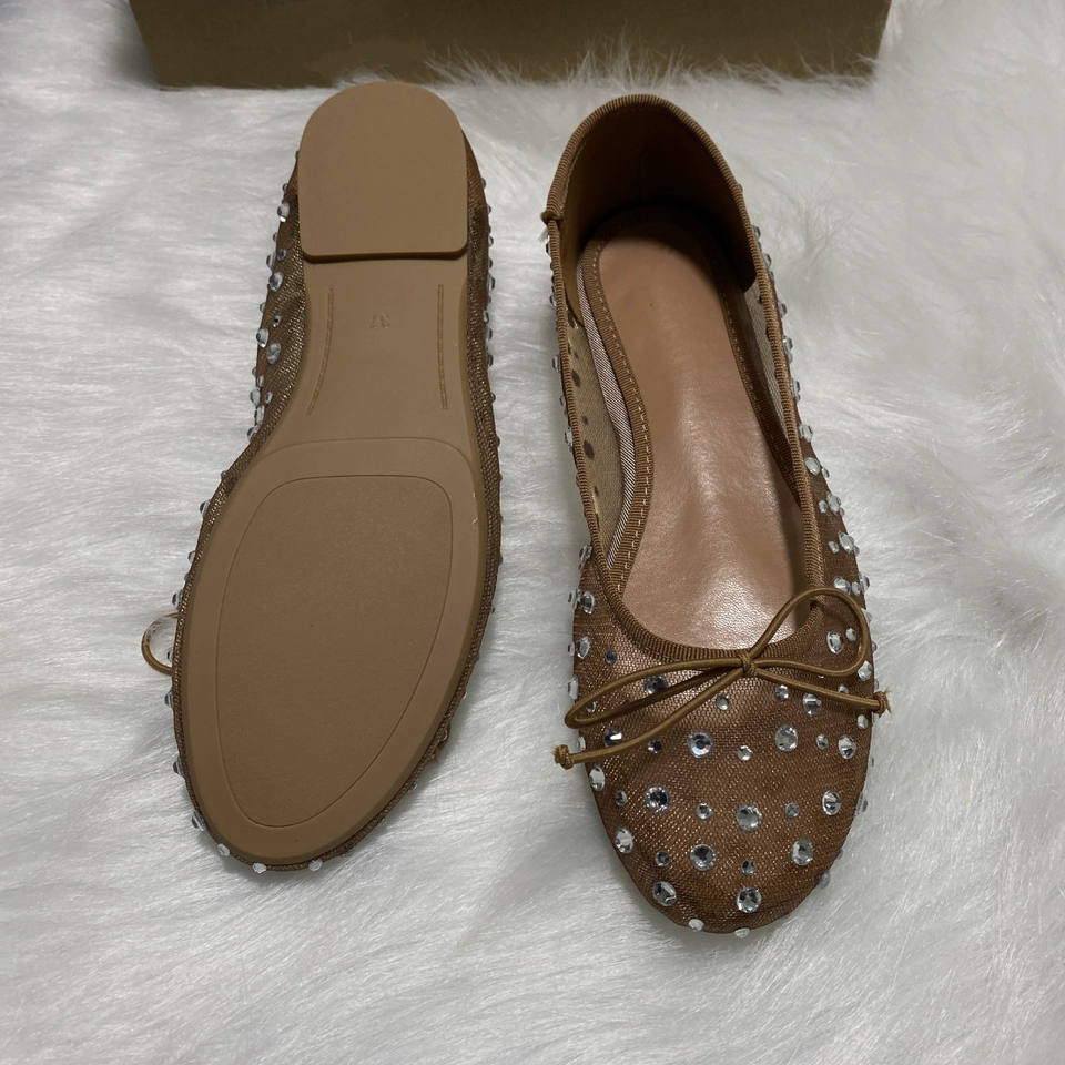 รองเท้าส้นเตี้ยบัลเล่ต์สำหรับผู้หญิงพร้อมโบว์ลายดาวน้ำหนักเบาสบายรองเท้าลำลองสำหรับผู้หญิง