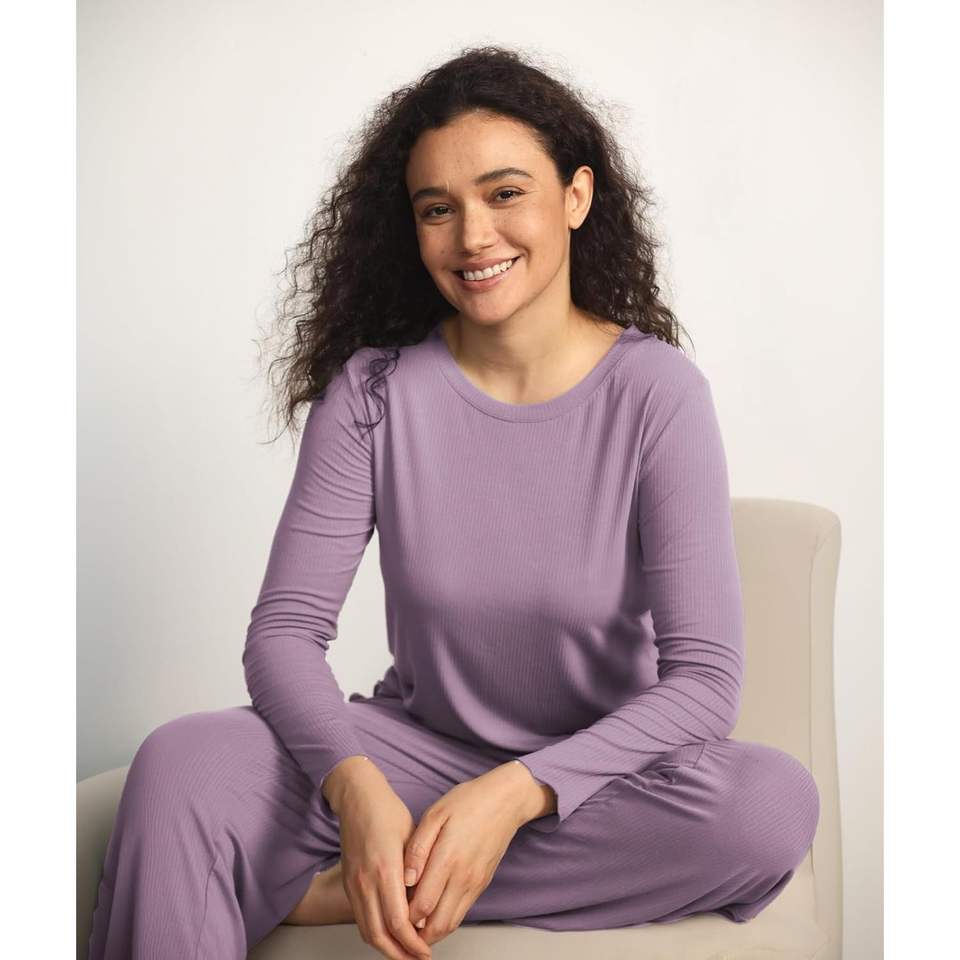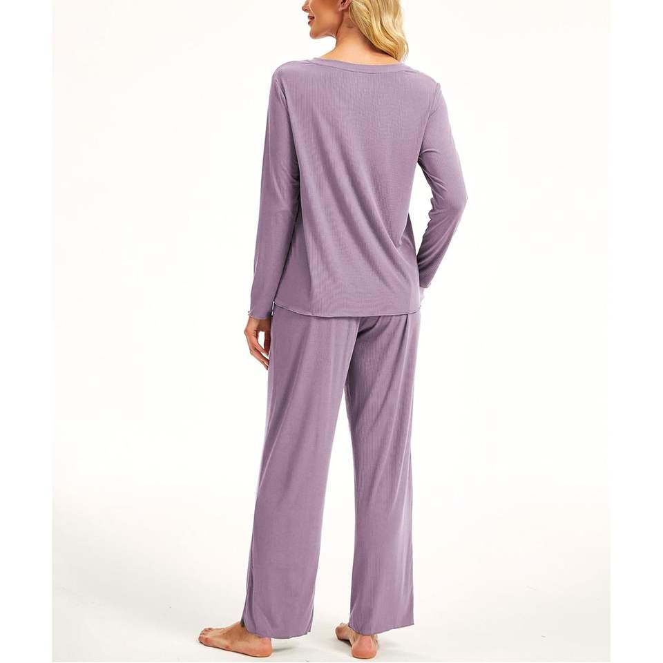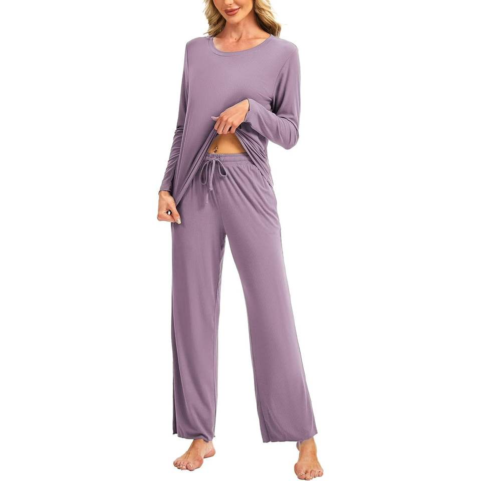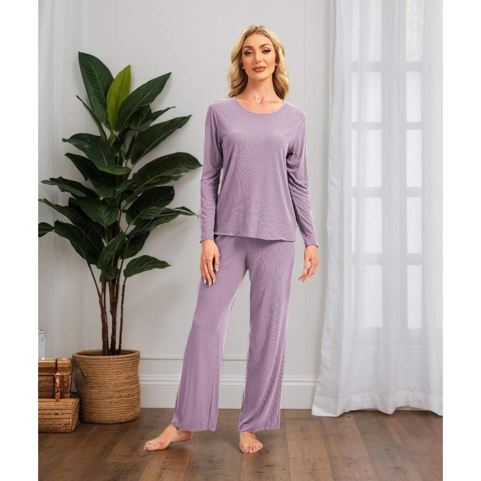 ชุดนอนผ้าวิสโคสผสมใยไผ่สำหรับผู้หญิง แขนยาว เนื้อผ้านุ่ม กางเกงขายาว ชุดนอนลำลองแสนสบาย