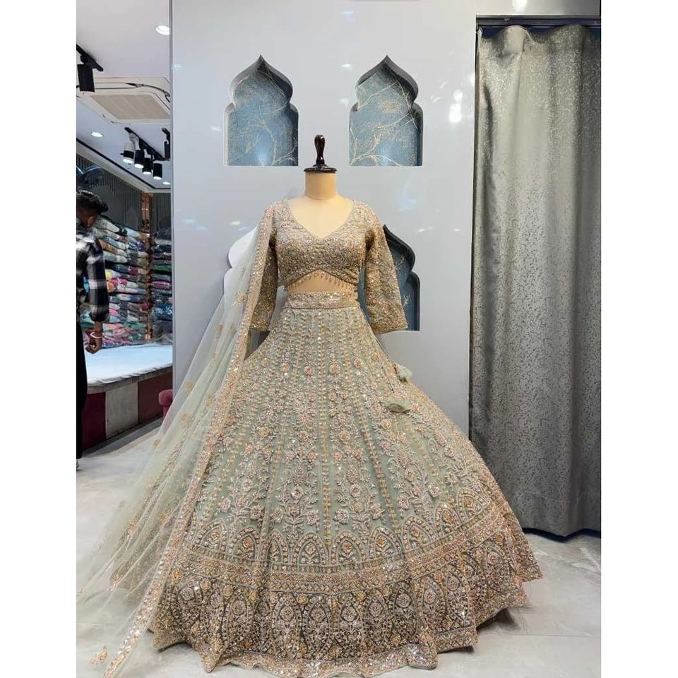 ชุดเลเฮนกาโชลีสีน้ำเงินสวยงามสำหรับงานปาร์ตี้ของผู้หญิง โดยนักออกแบบเบวาฟา พร้อมงานปักเลื่อมอย่างประณีต