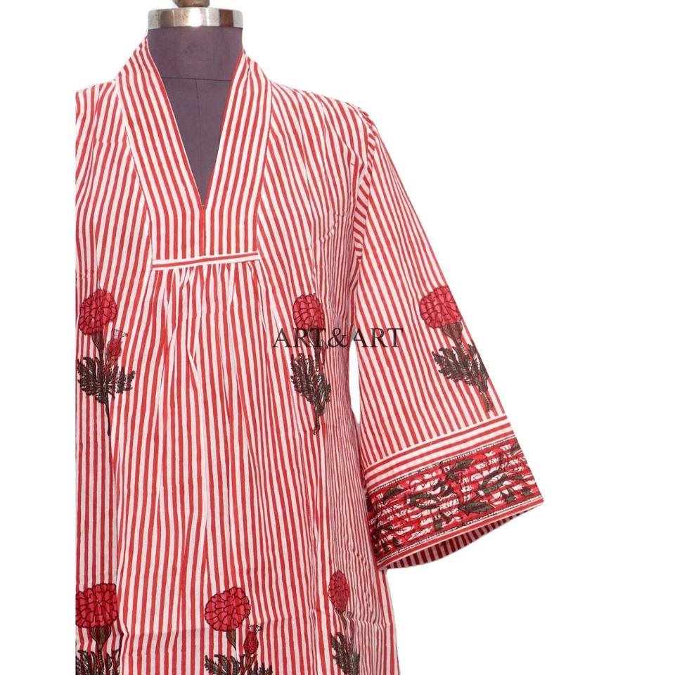 เดรสยาวผ้าฝ้ายพิมพ์ลายดอกไม้สไตล์วินเทจทรงหลวม คอวี แขนยาว ใส่สบาย เป็นมิตรต่อสิ่งแวดล้อม สวยงามสำหรับผู้หญิง