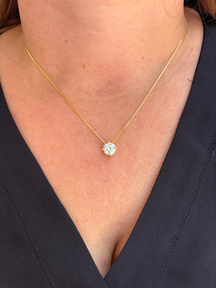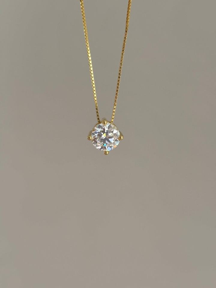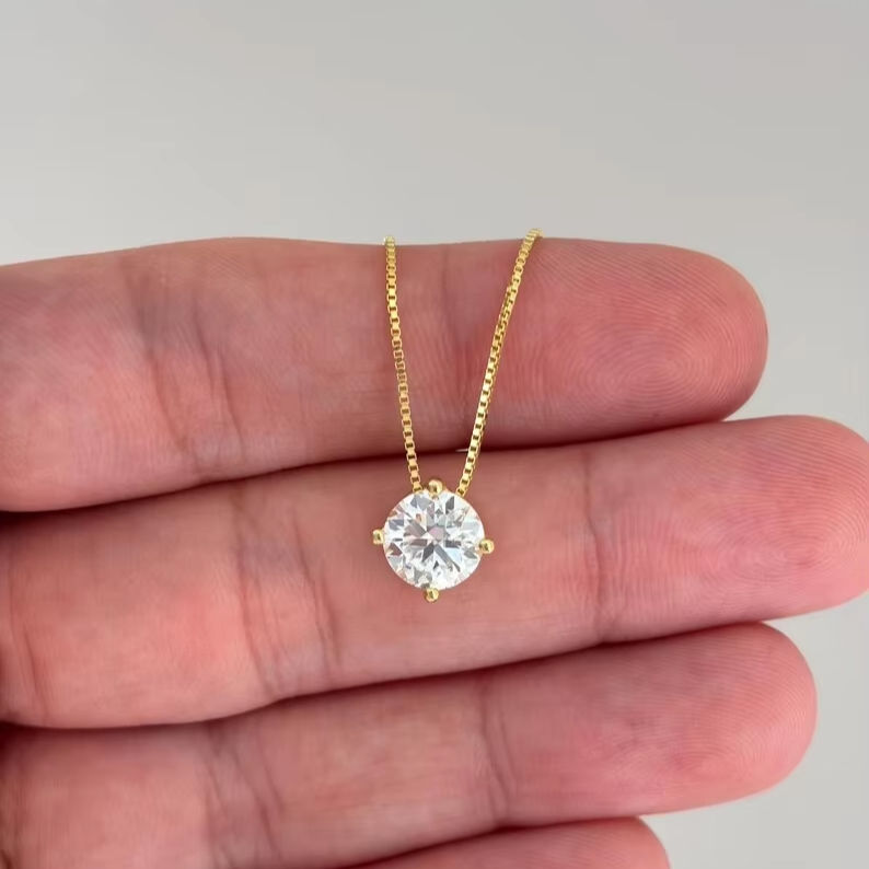 สร้อยคอเพชรเม็ดเดี่ยวมอยส์ซอไนต์ดีไซน์สวยสำหรับผู้หญิง: จี้เส้นใหญ่8มม. พร้อมโซ่ทรงกล่อง