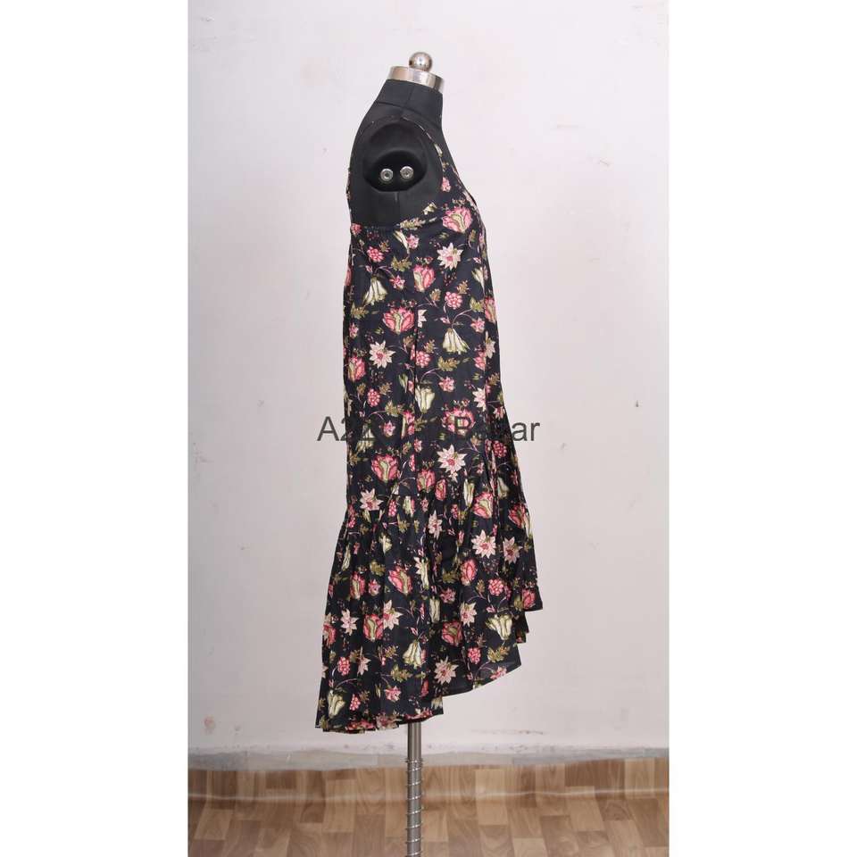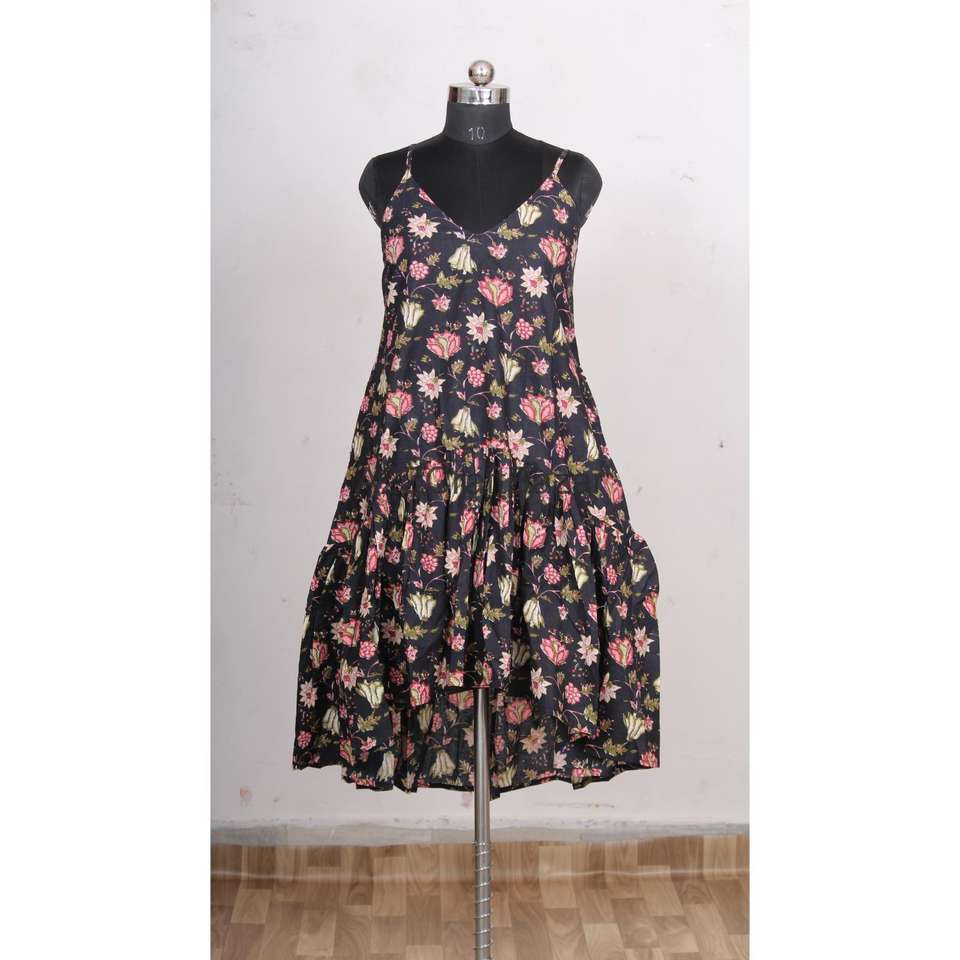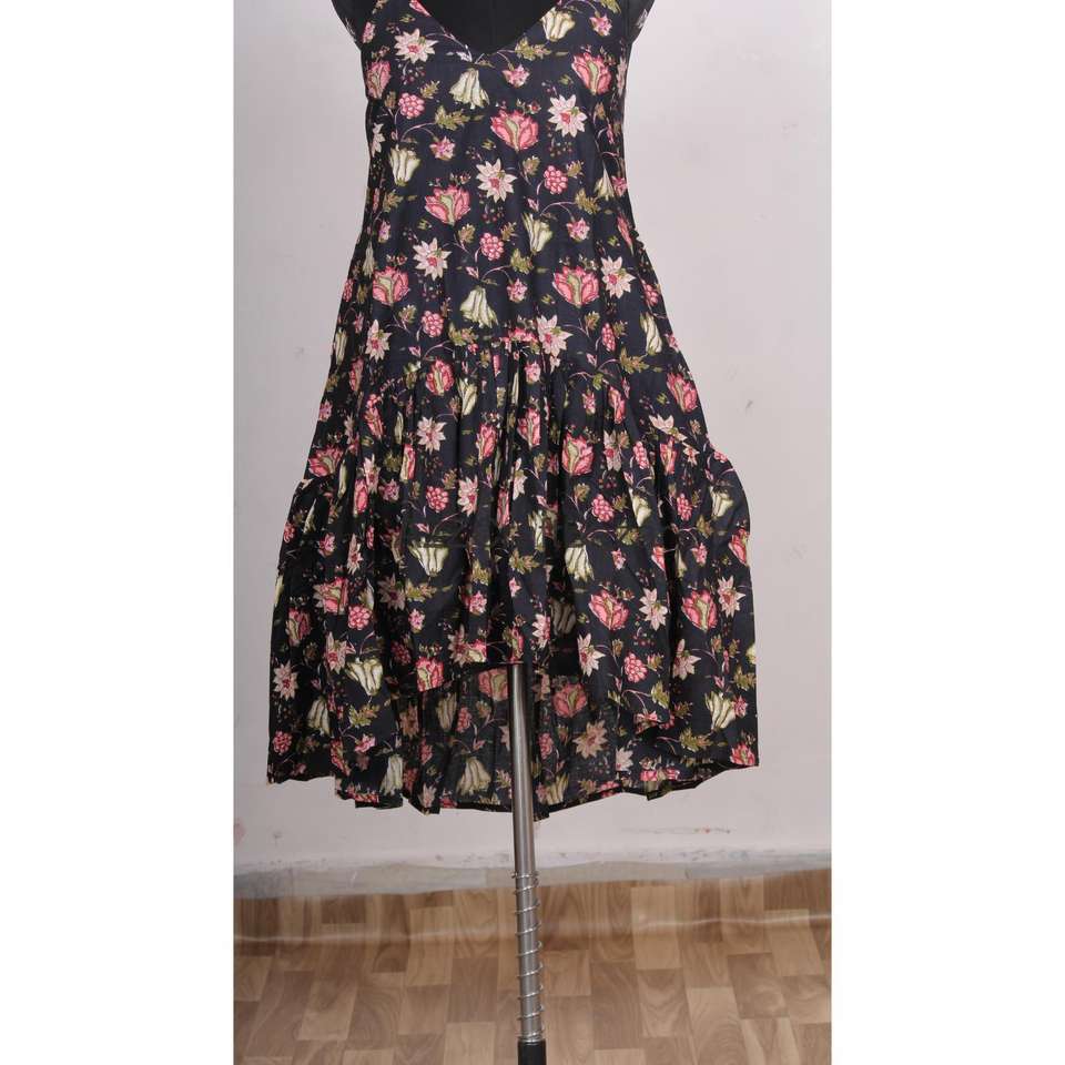 เดรสผู้หญิงสวยงามเป็นมิตรกับสิ่งแวดล้อม ถักจากผ้าฝ้ายแท้ 100% คอวี ลายดอกไม้ ความยาวปานกลาง ทรงเข้ารูป แต่งระบาย พิมพ์ลายดิจิทัล