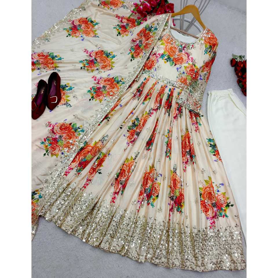 Women's Beautiful Gown with Digital Print Includes Pent and Dupatta Set
