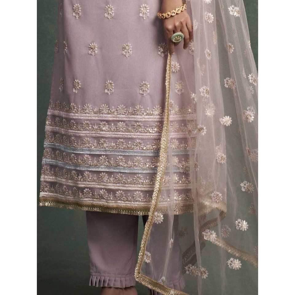 ชุดสلوار คามีซ ผ้าตาข่ายปักเลื่อมลายผีเสื้อสีม่วงลาเวนเดอร์สวยงามสำหรับผู้หญิง เหมาะสำหรับงานเทศกาล