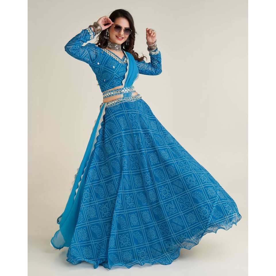 ชุดเลเฮนกาโชลีสวยงามสำหรับผู้หญิง ประดับด้วยงานปักด้าย กระดาษกระจก และเลื่อม