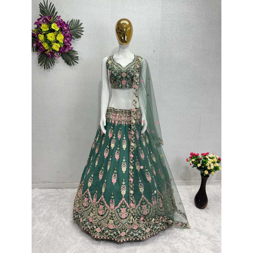 Lehenga choli ชุดปาร์ตี้ที่สวยงามของผู้หญิงพร้อมดีไซน์โมติที่ทำด้วยมือ