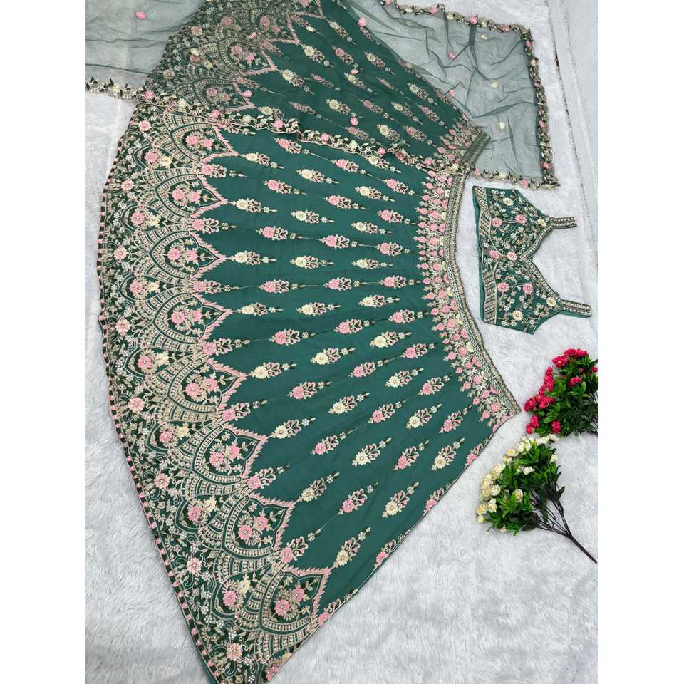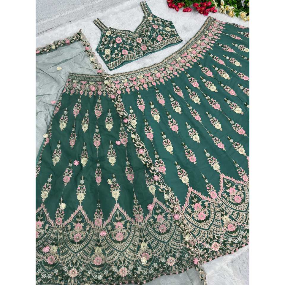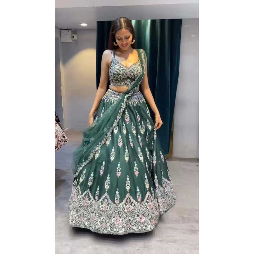 Lehenga choli ชุดปาร์ตี้สวยๆสำหรับผู้หญิงพร้อมด้วยงานทำมือโมติแฟชั่นสีเขียวไซส์ M กรรม