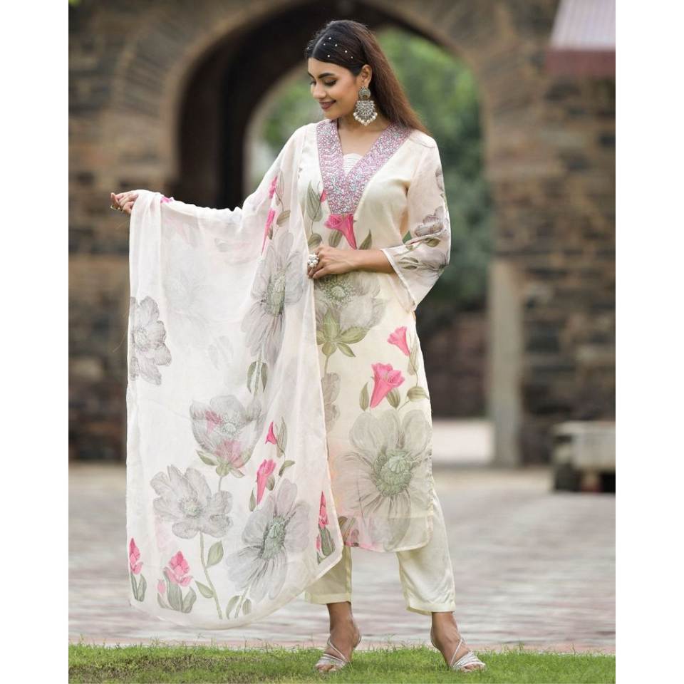 ชุดสูทผู้หญิงสวยสำหรับปาร์ตี้พร้อม dupatta บนล่าง