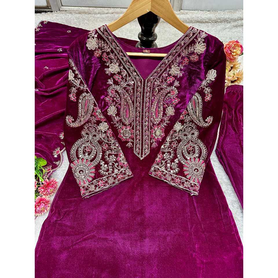 Women's Beautiful Party Wear Top Bottom Dupatta Set with Embroidery Work
