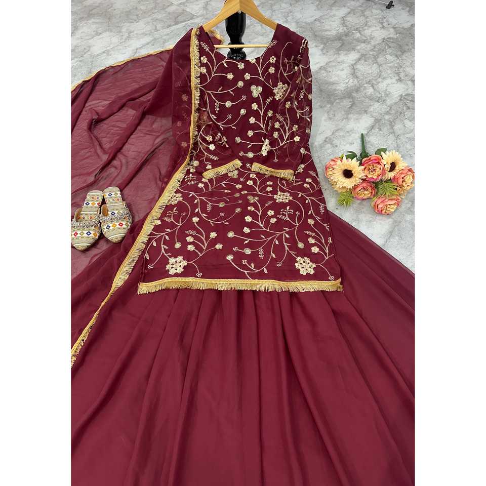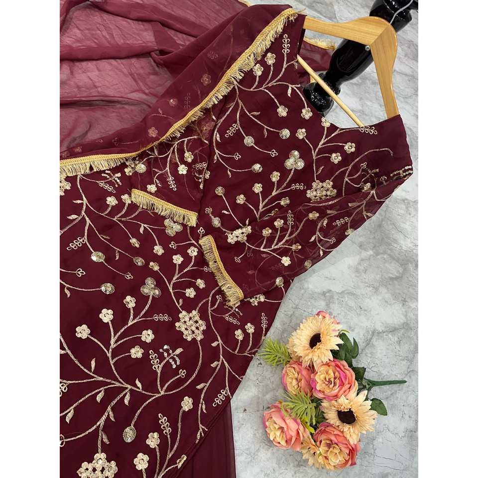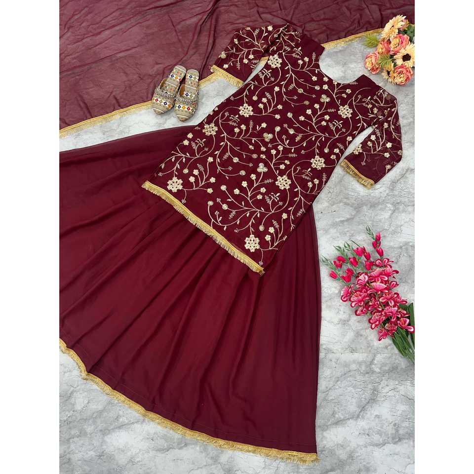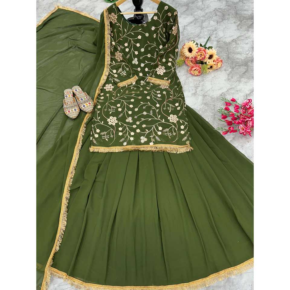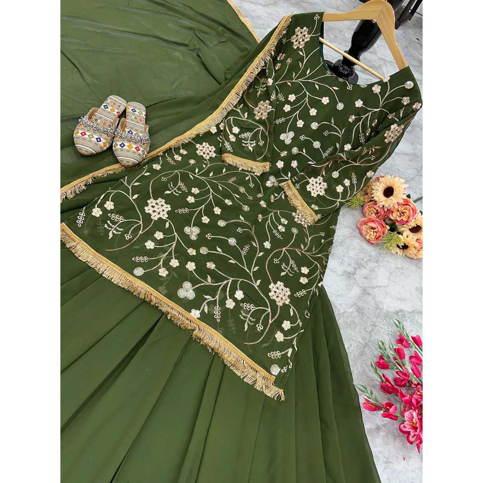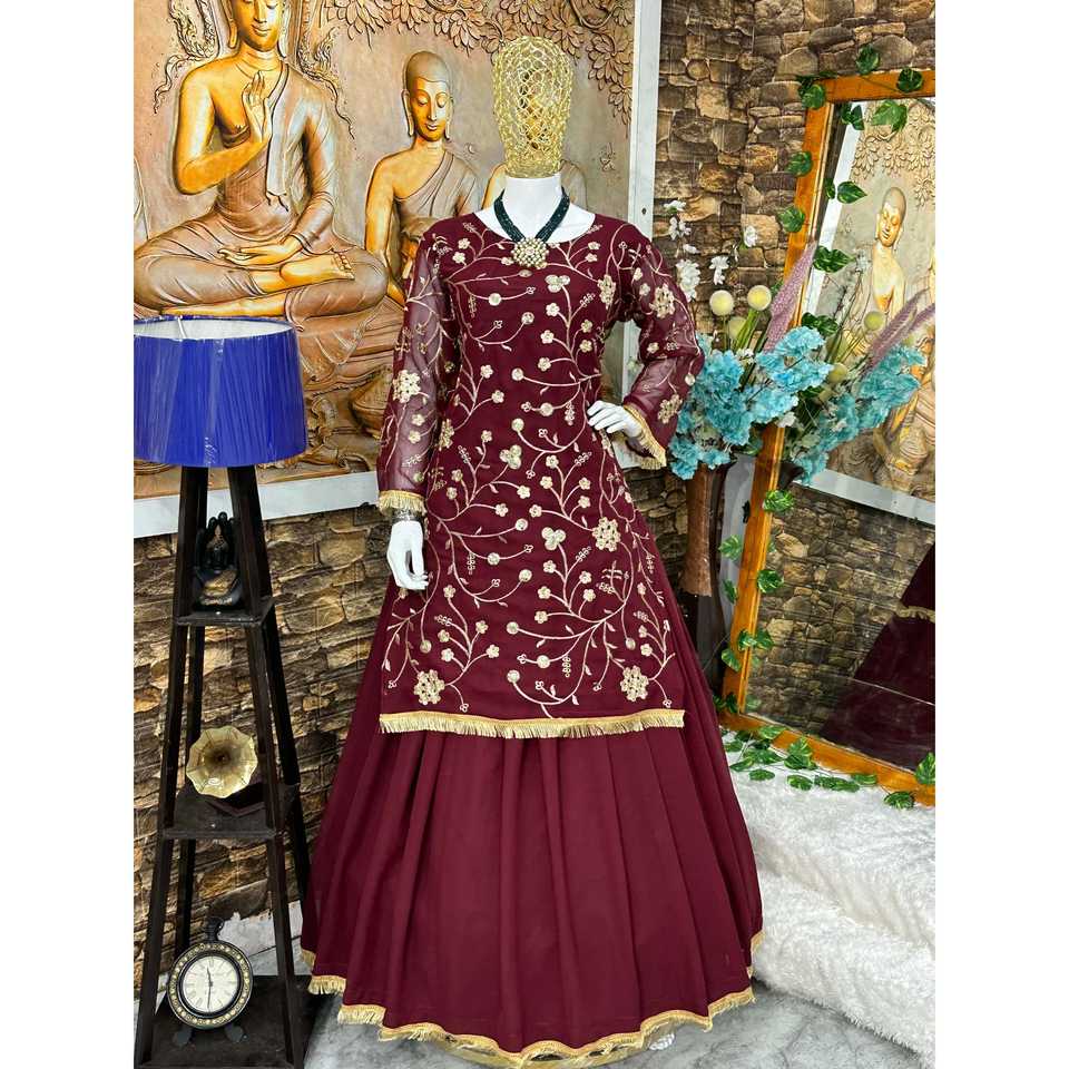 ชุดเสื้อและเลเฮนกาสำหรับงานปาร์ตี้สวยงามสำหรับผู้หญิง พร้อมผ้าคลุมไหล่