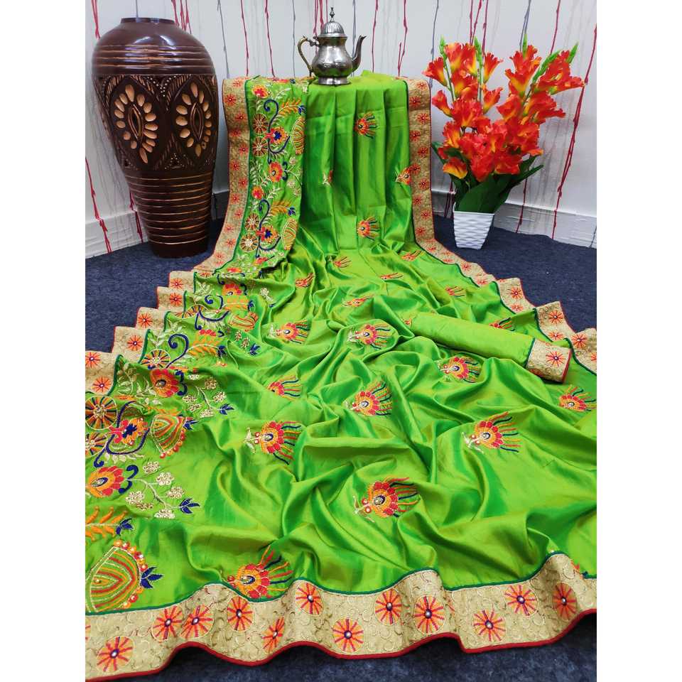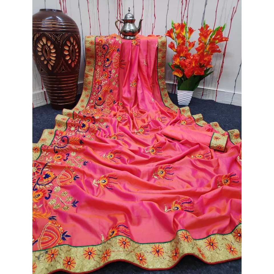 ผ้าส่าหรีสวยงามสำหรับผู้หญิง พร้อมงานปักที่ประณีตและลายพิมพ์ดอกไม้