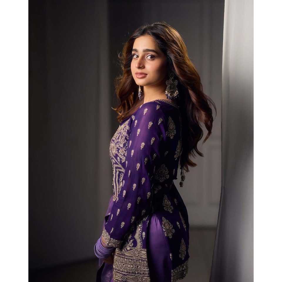 ชุดเสื้อและกางเกงสวยงามสำหรับผู้หญิง พร้อมผ้าคลุมไหล่แฟนซีสำหรับงานปาร์ตี้