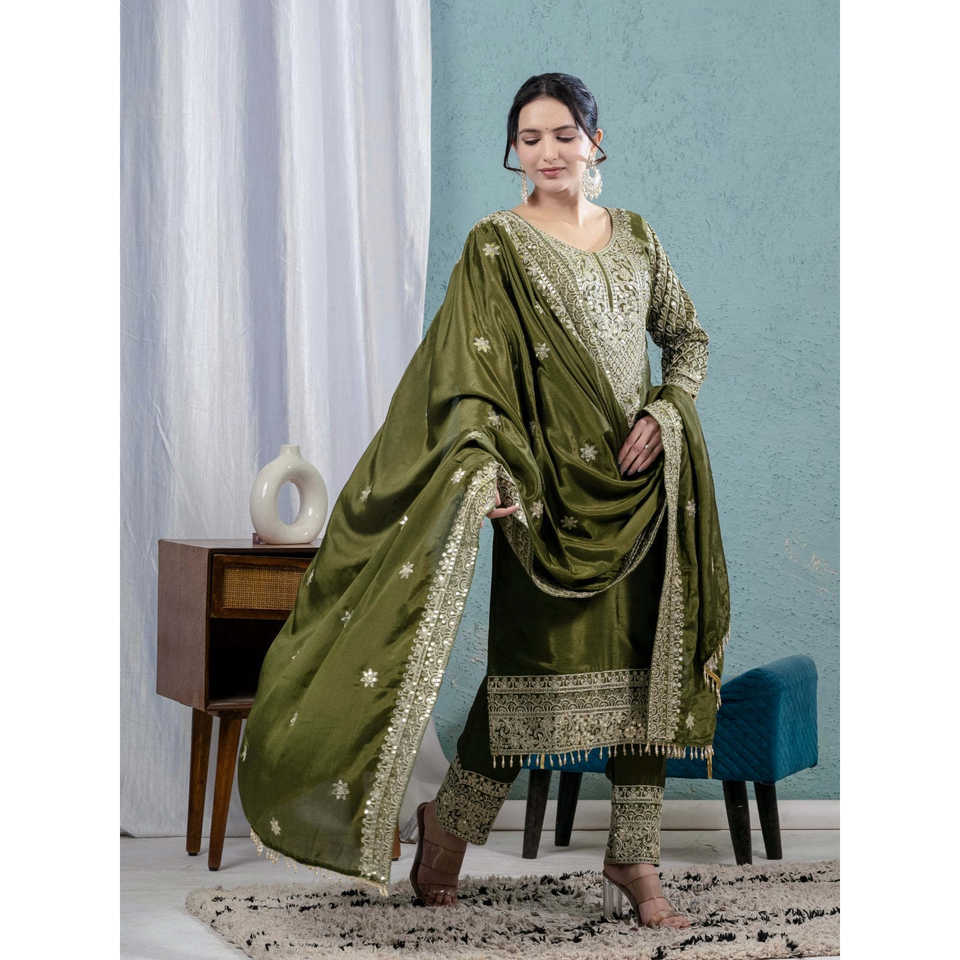 Women's Beautiful Top Pant Dupatta Set with Embroidered Sequence Work Design
