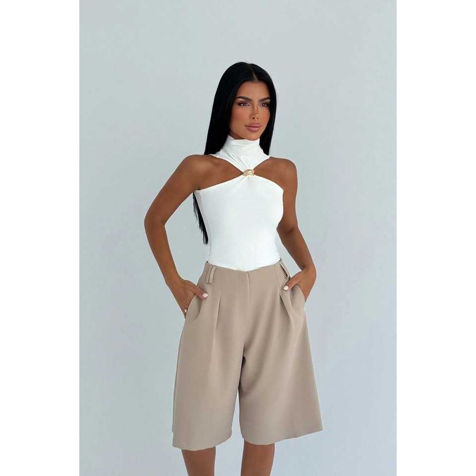 กางเกงขาสั้นเอวสูงสีเบจสำหรับผู้หญิง รุ่นเบสิค ไซส์ XS ตกแต่งลายฮิต พร้อมปักโลโก้ตามสั่ง