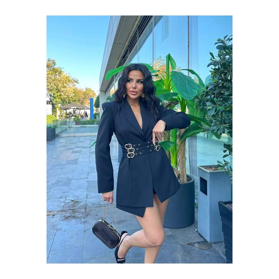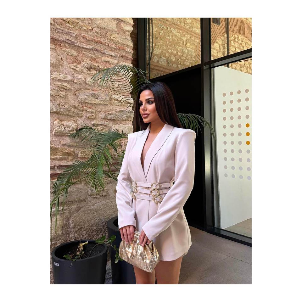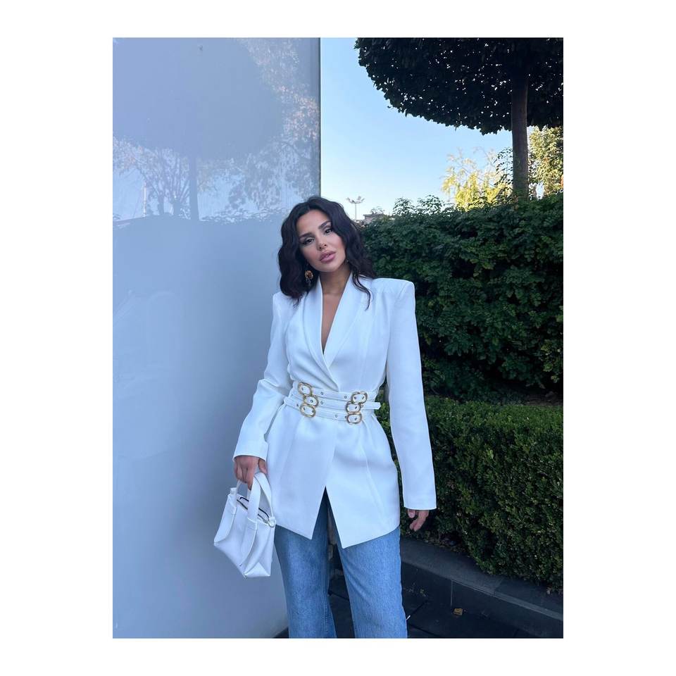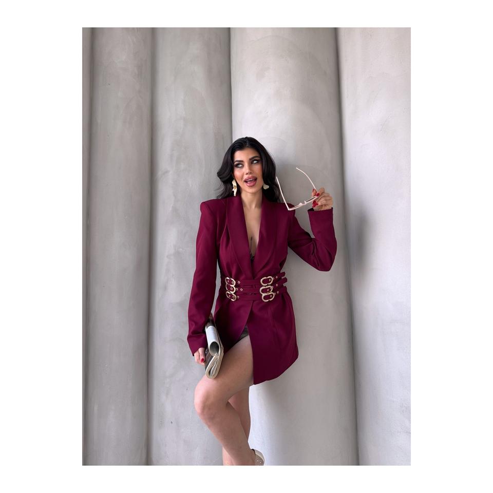 Women's Belt Detail Blazers Chic Jacket with Fashionable Belt Accents