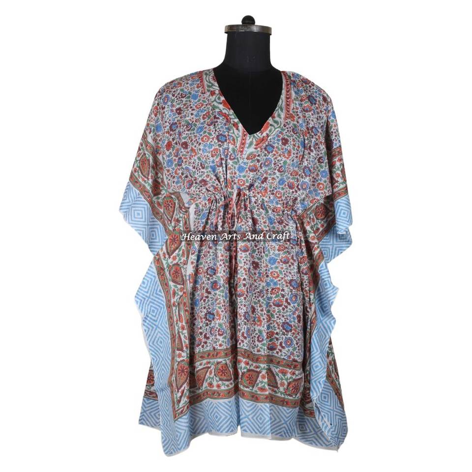 ชุดราตรีพิมพ์ลายบล็อกด้วยมือสำหรับผู้หญิง สไตล์แอฟริกัน ชุดกะฟตันสั้น รุ่น KFCS161 ผลิตแบบ ODM ทรงเข้ารูปตามธรรมชาติ