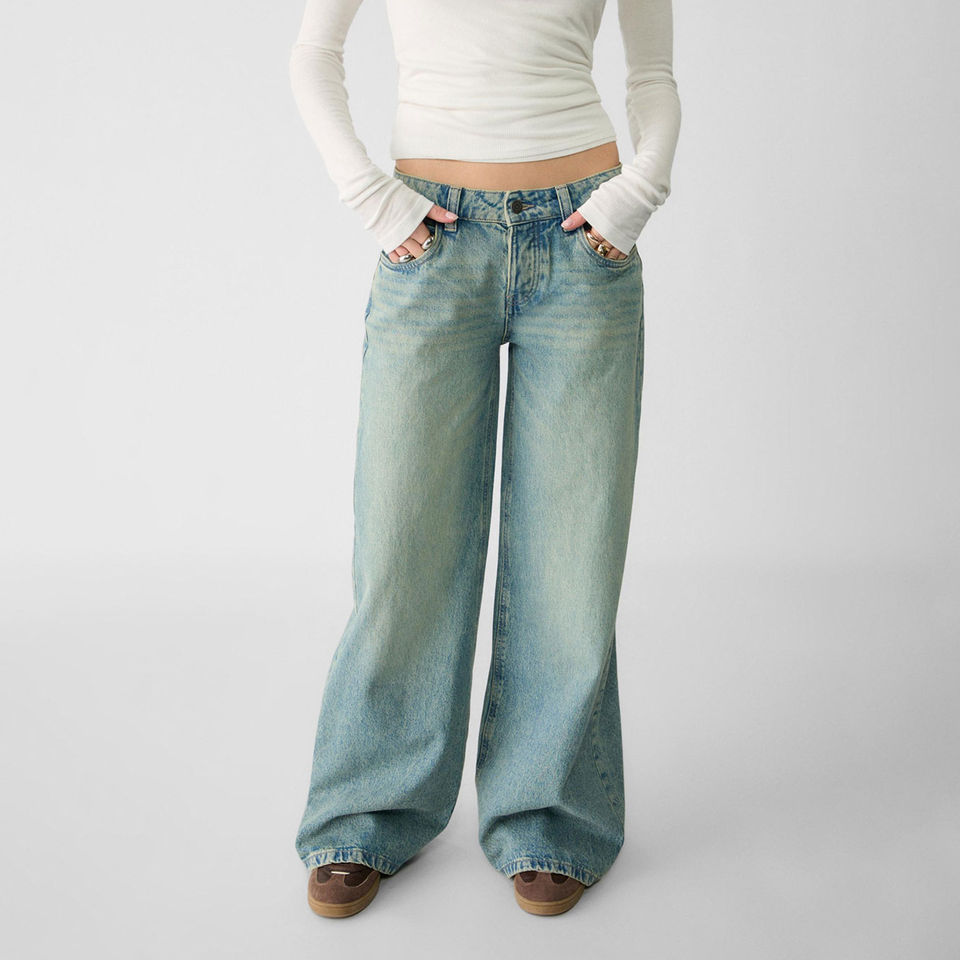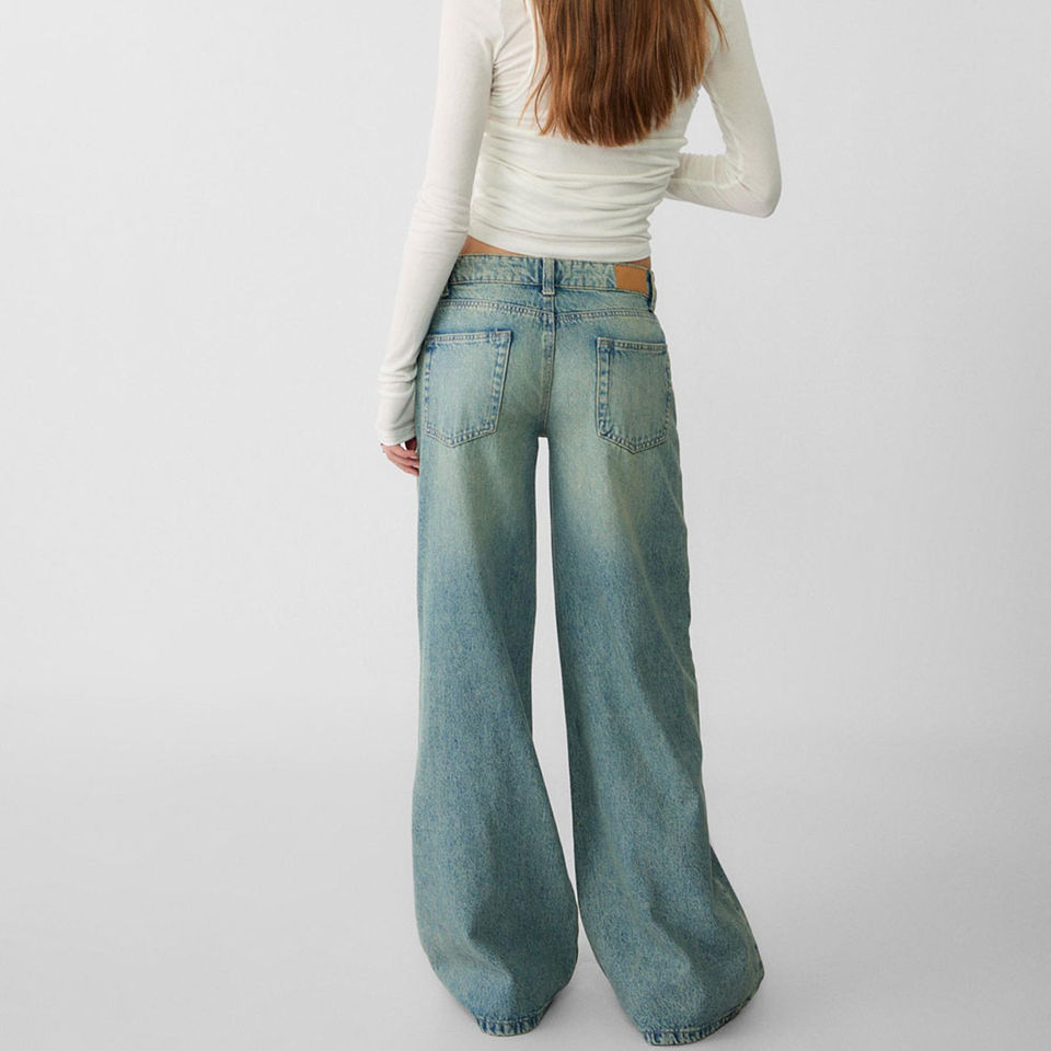 100% ผ้ายีนส์สไตล์ baggy สำหรับผู้หญิงผ้าฝ้ายระบายอากาศได้ดีตัวเลือกการปรับขนาดและการพิมพ์แบบลำลองที่กำหนดเอง