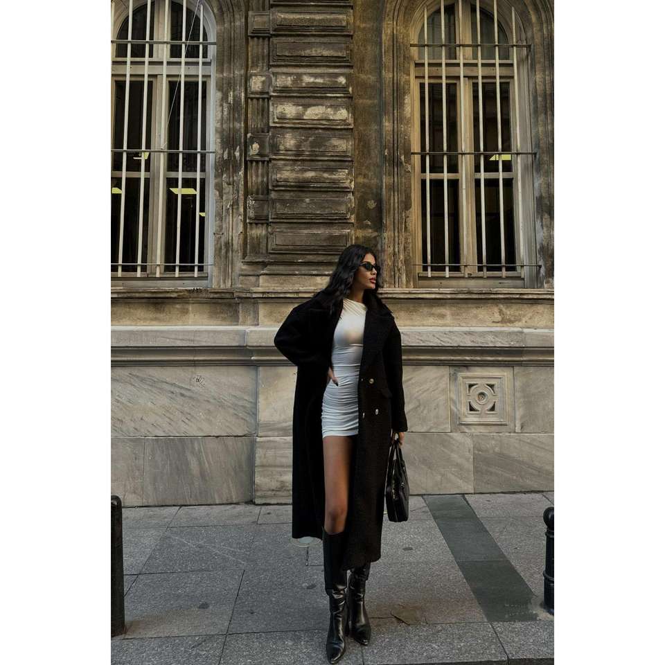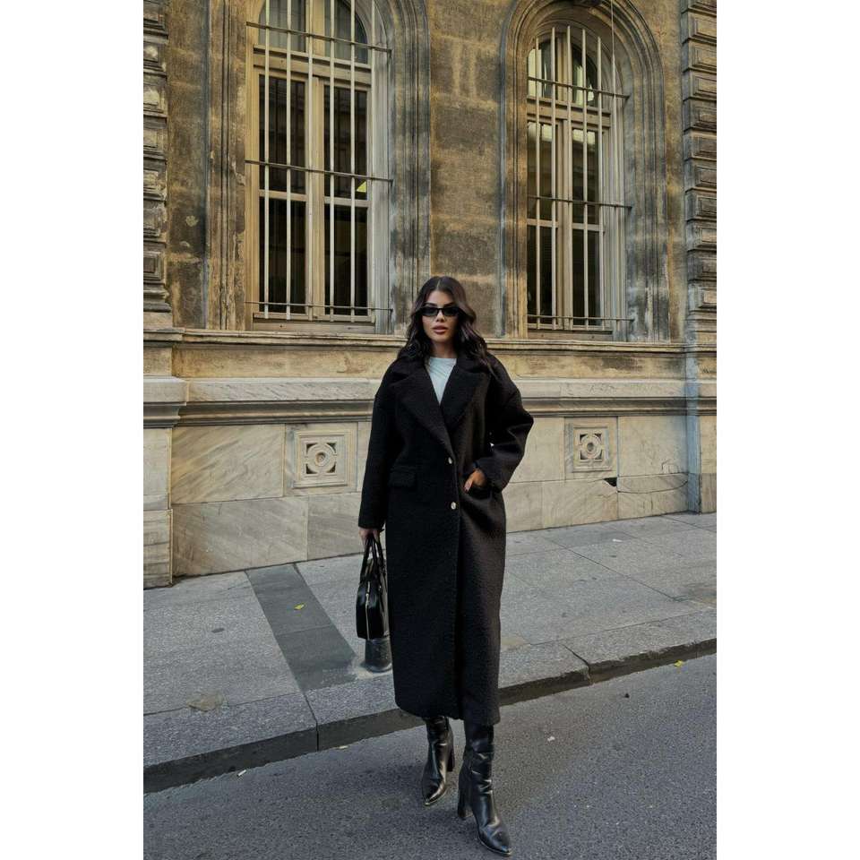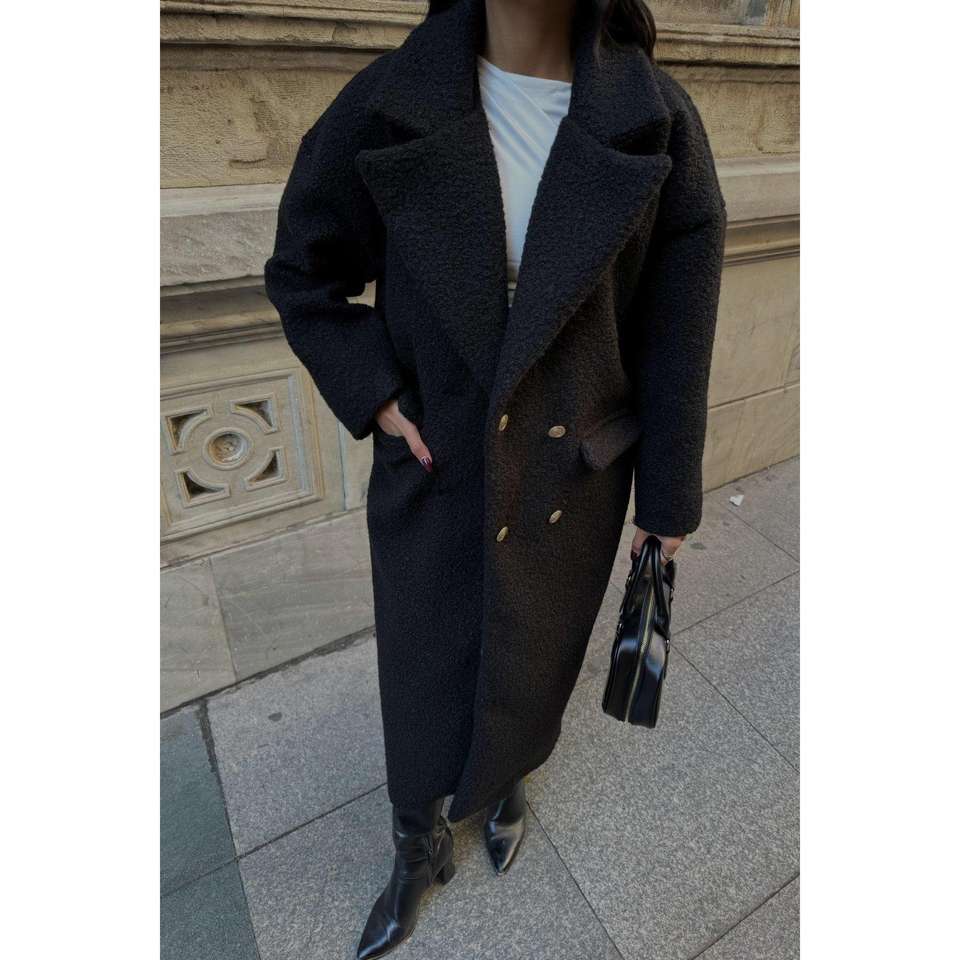 เสื้อโค้ทบูเคลสีดำสำหรับผู้หญิง