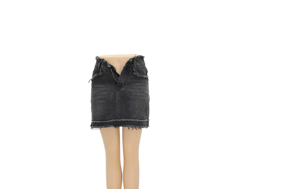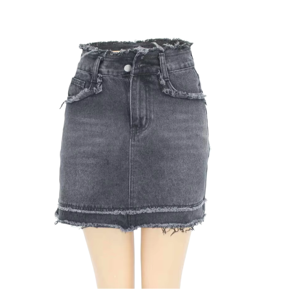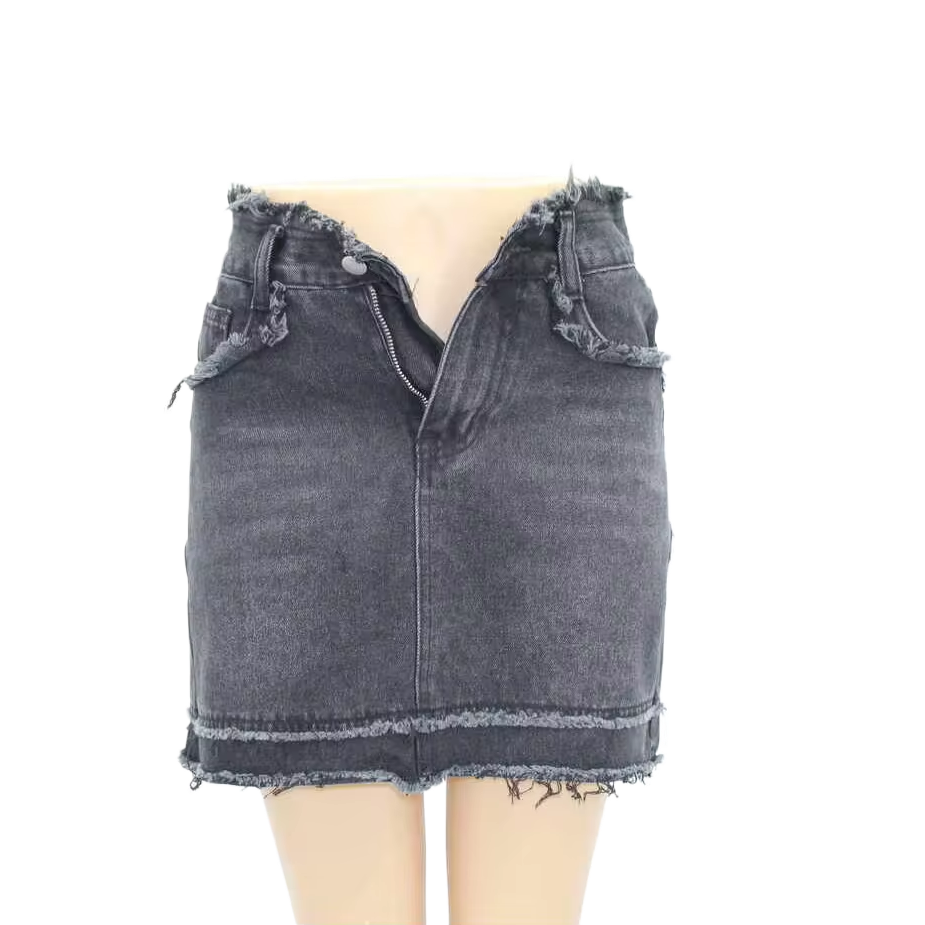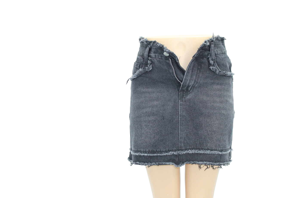 กระโปรงยีนส์สั้นมีซิปกระดุมสีดำสำหรับผู้หญิงมีโลโก้เอวสไตล์ผ้ายีนส์ Fabric-Y2K สไตล์ฤดูใบไม้ร่วงฤดูร้อนฤดูใบไม้ผลิ