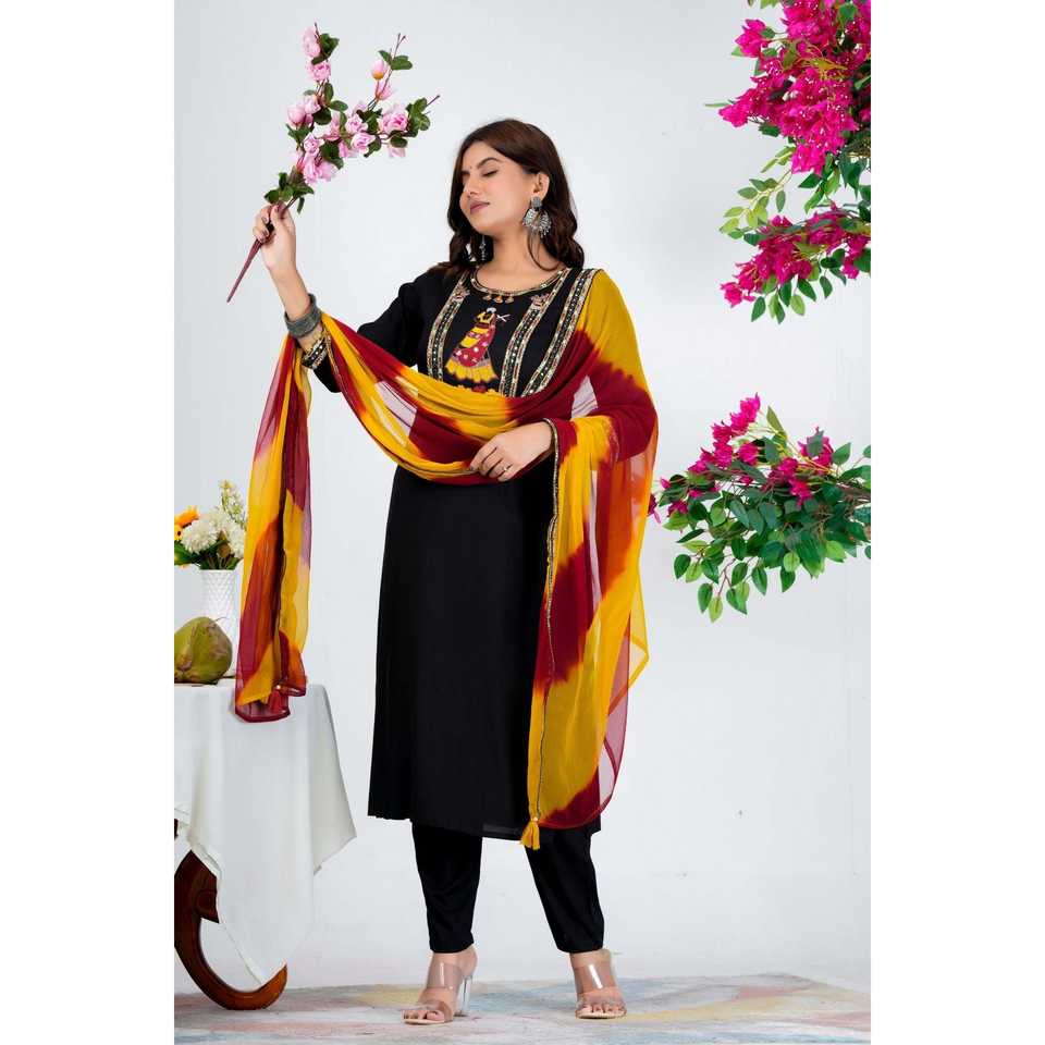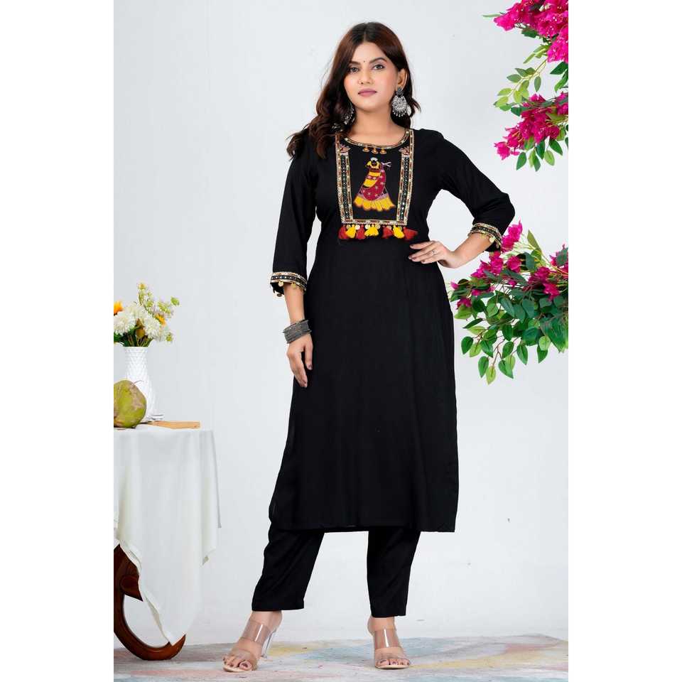 Kurta สีดำที่มีสีเหลืองและสีน้ำตาลแดงสี