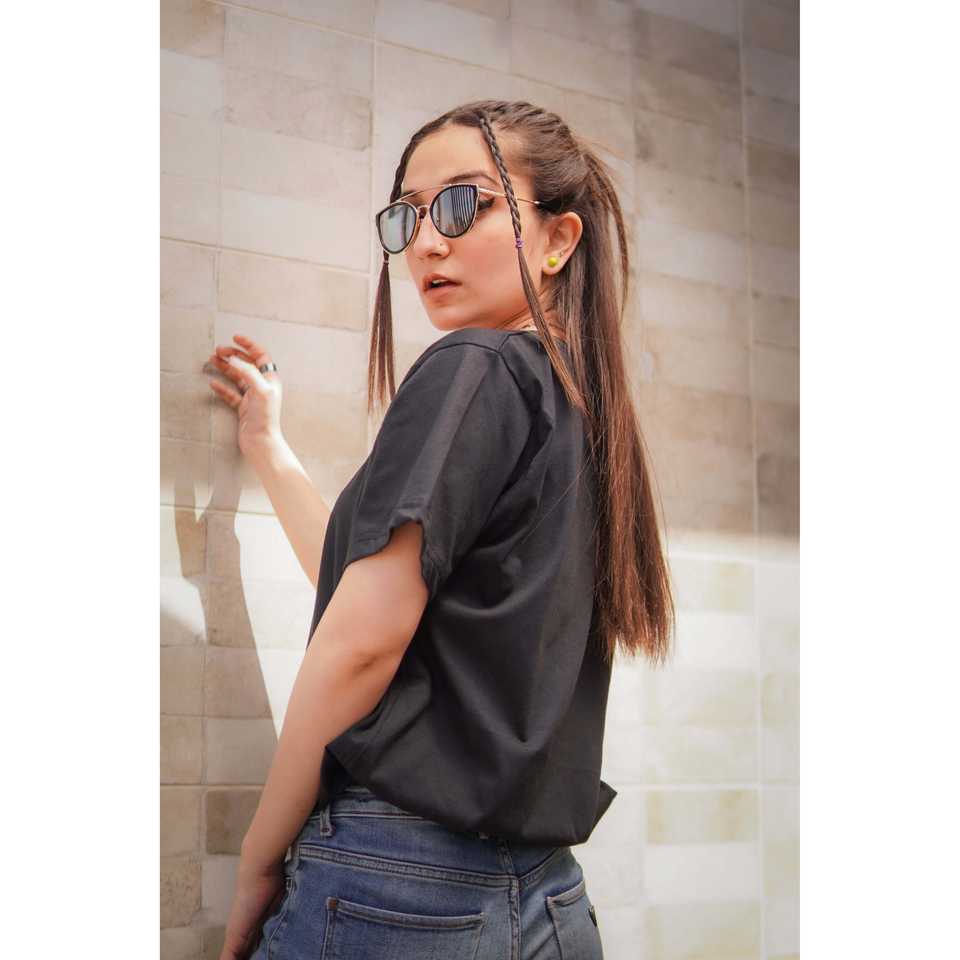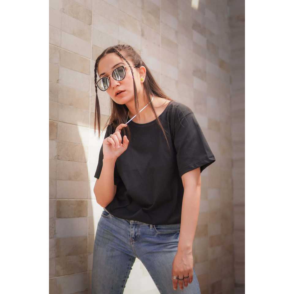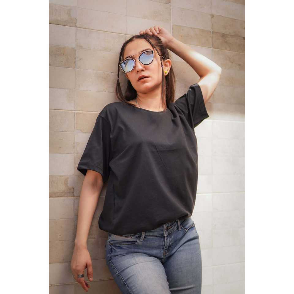 เสื้อยืดสีดำขาวดำสำหรับผู้หญิง