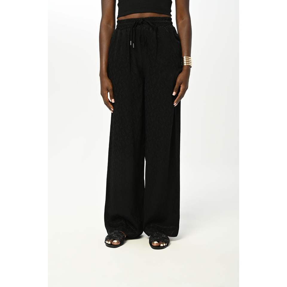 กางเกงขากว้างลายสีดำสำหรับผู้หญิงพร้อมขอบเอวยางยืดทรงยาว