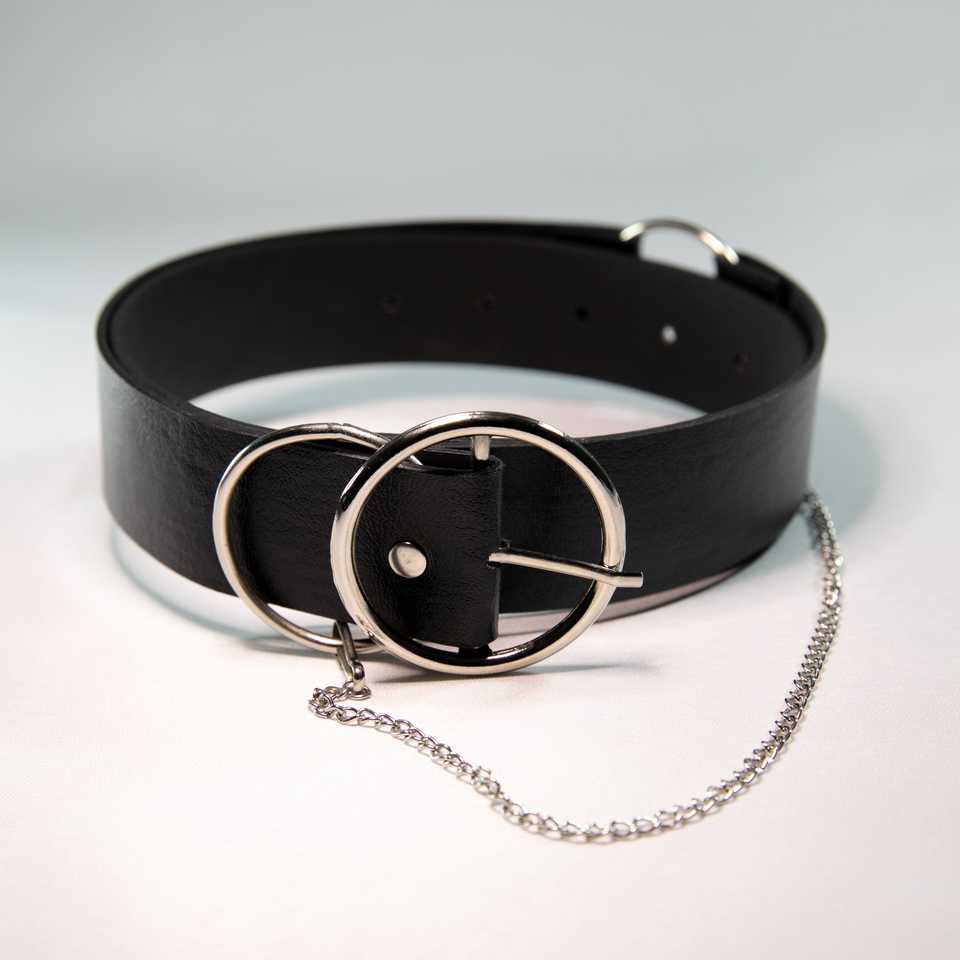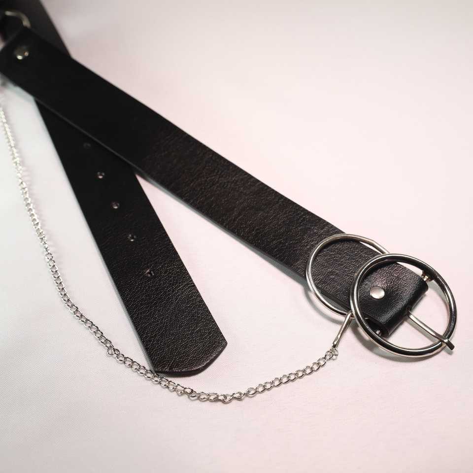 Women's Black Polyester Belt With D Ring Buckle And Chain Casual Style