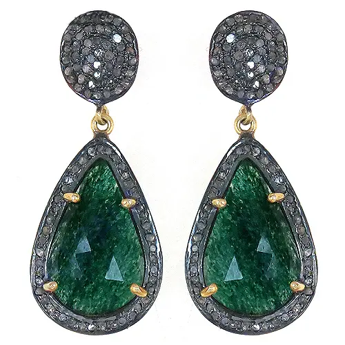 ต่างหูระย้าทรงหยดน้ำประดับเพชรและมรกตสีดำโรเดียมสำหรับผู้หญิง ดีไซน์เรขาคณิต เหมาะสำหรับงานแต่งงานและเป็นของขวัญในงานปาร์ตี้