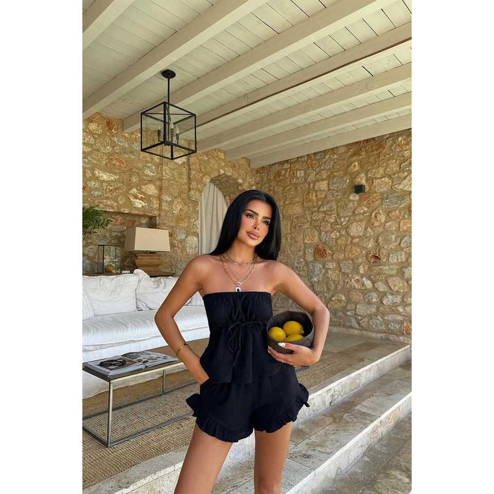 ชุดกางเกงขาสั้นสีดำสำหรับผู้หญิง