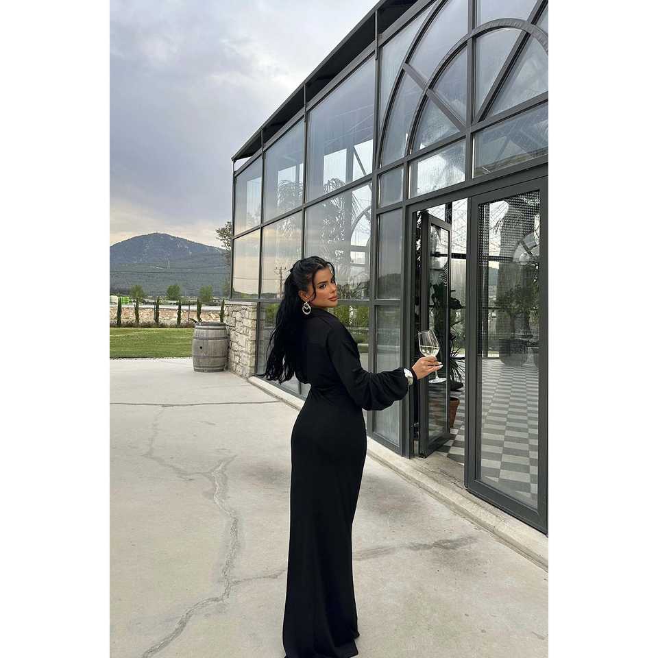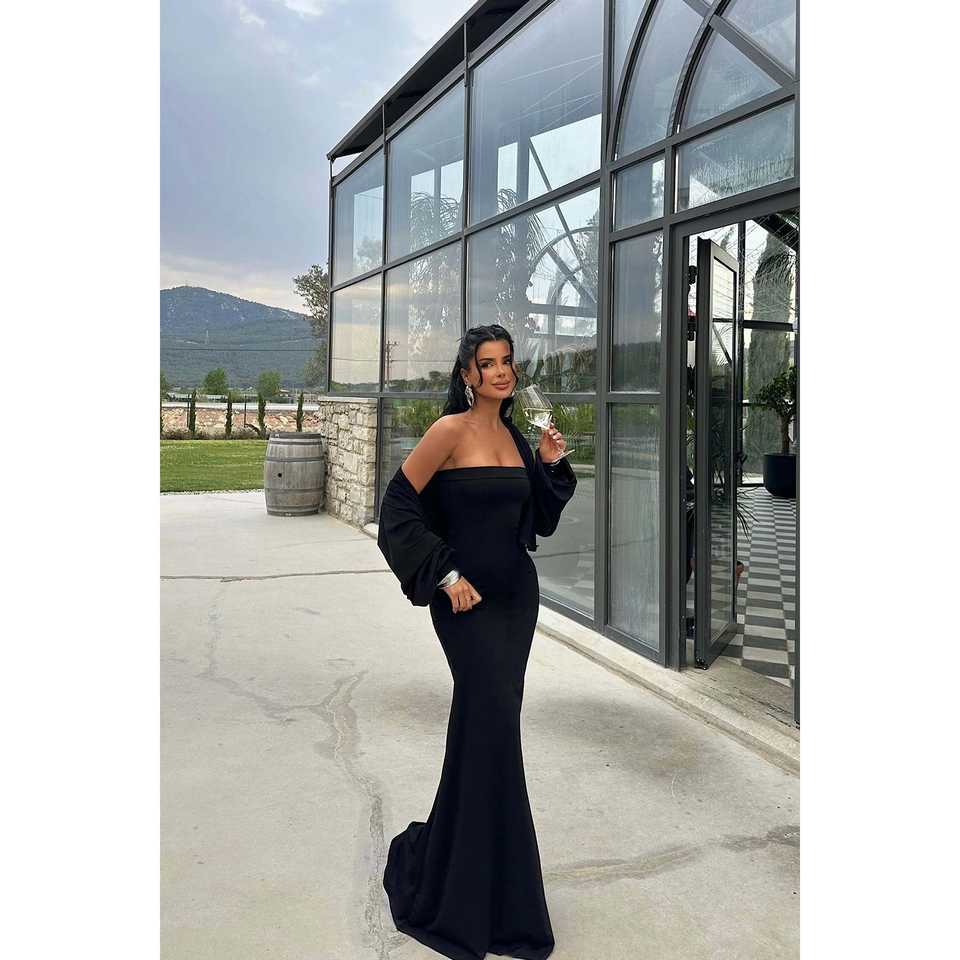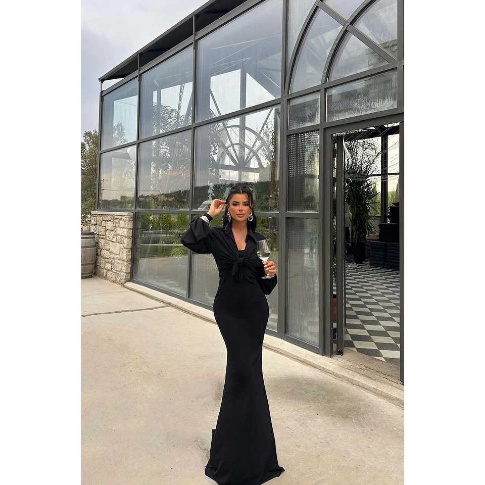 ชุดสูทสีดำสำหรับผู้หญิง พร้อมเสื้อคอปกและกระโปรง ชุดที่ดูสง่างาม