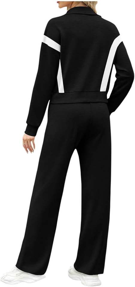ชุดเซ็ต 2 ชิ้น ลายทางขาวดำสำหรับผู้หญิง เสื้อแจ็คเก็ตซิปพร้อมกางเกงขายาวทรงกว้าง สไตล์ลำลอง แฟชั่นสตรีทแวร์ รับผลิตแบบ OEM