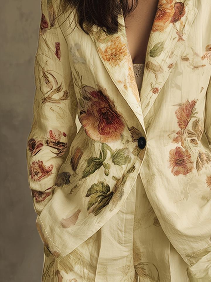 เสื้อเบลเซอร์ผู้หญิงสไตล์ใหม่ยอดนิยม คอวีติดกระดุม ผ้ากำมะหยี่ลายดอกไม้สไตล์วินเทจ ชุดสูททำงานสำหรับผู้หญิง