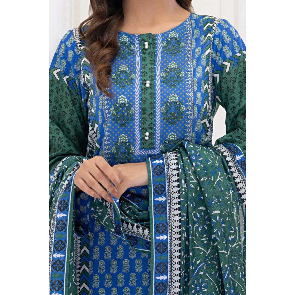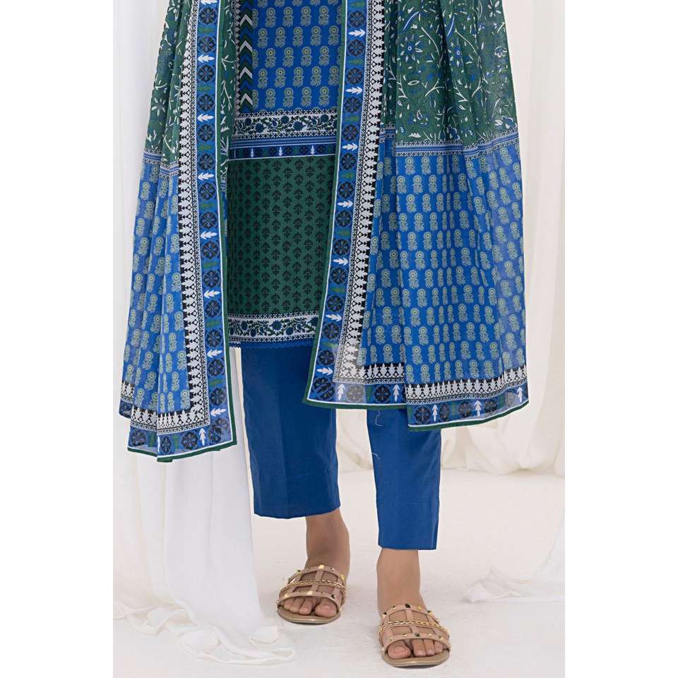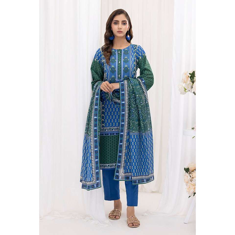 ชุดสูทผ้าลอนสีน้ำเงินสำหรับผู้หญิงแบบ 3 ชิ้น ยังไม่ได้เย็บติดกัน